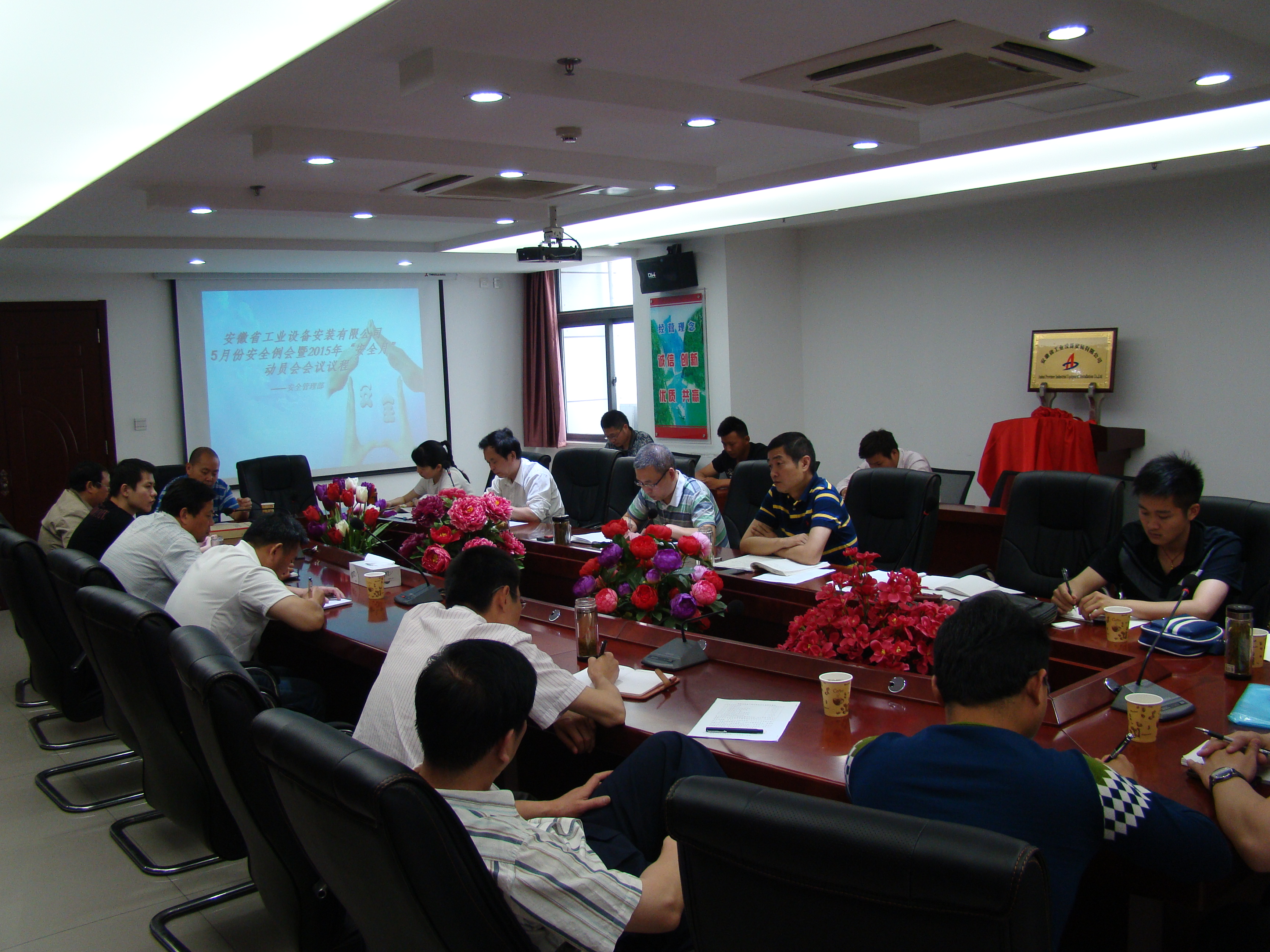 5月27日上午,公司在第一會議室召開五月份安全例會暨2015年“安全生產月”動員會,公司副總經理劉安俊,安全管理部全體人員,各分公司分管生產安全經理、安全科長,在建項目專職安全員30余人參加了會議,會議由安全管理部經理王岳濤主持。