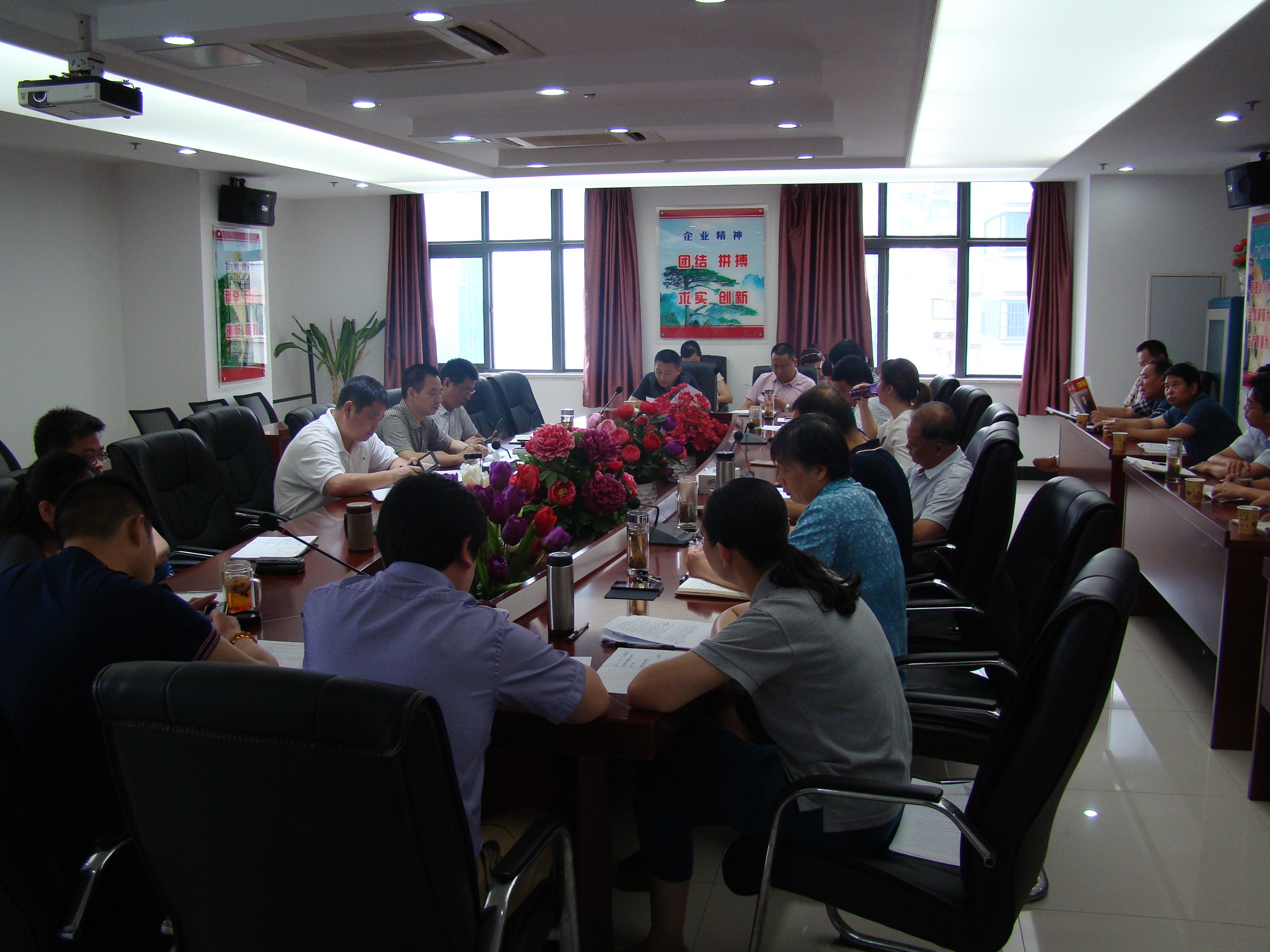 7月20日上午,公司黨委召開了2015年三季度黨群工作例會暨黨委中心組擴大學習會。公司黨委書記、紀委書記胡六中主持會議,公司董事長、總經理王軍邦出席會議,公司領導班子成員、所屬各單位、機關各部門主要負責人、基層黨支部書記、工會主席、黨群部門有關人員參加了會議。