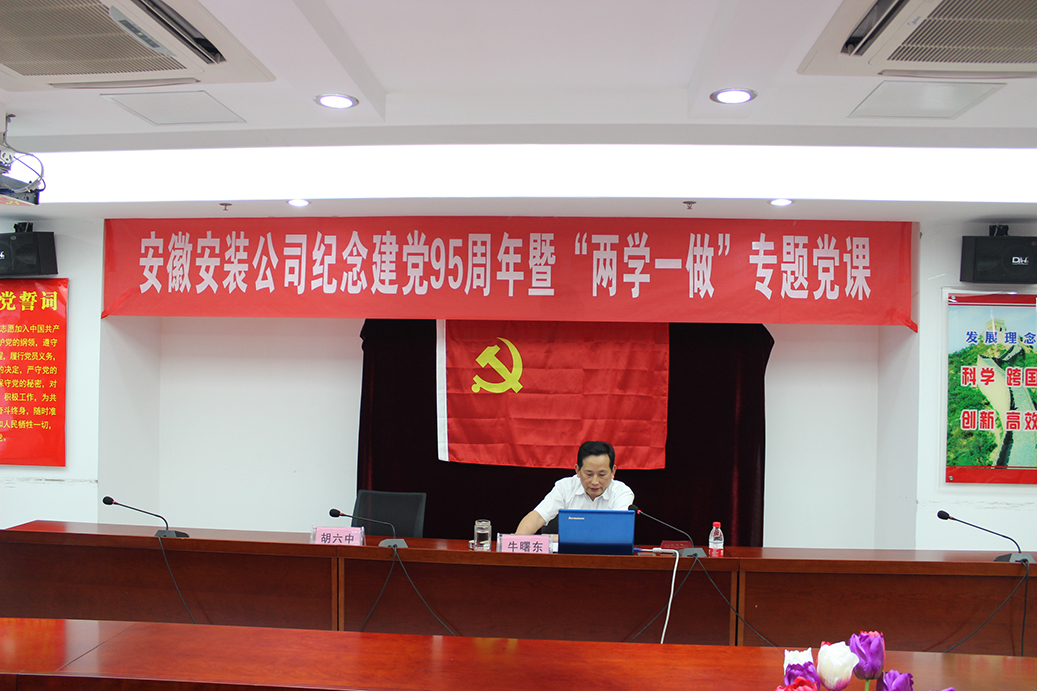 為了使廣大黨員深刻理解開展“學黨章黨規、學系列講話,做合格黨員”學習教育的重大意義,幫助廣大黨員明晰學習教育內容、途徑與方法,確保“兩學一做”學習教育取得實效。6月29日下午, 集團公司黨委副書記牛曙東到聯系點單位---安徽安裝公司開展“兩學一做”專題黨課”教育。安徽安裝公司70余名黨員干部聆聽了專題教育。黨委書記胡六中主持學習會。