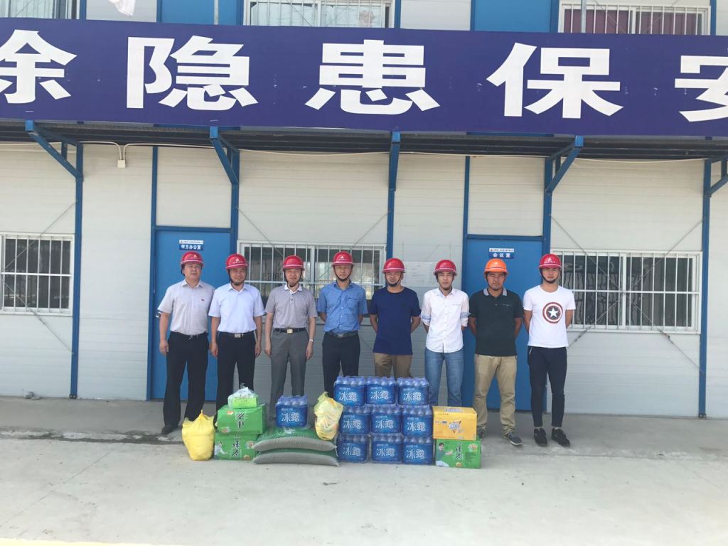 胡書記一行認(rèn)真聽取了項(xiàng)目部施工現(xiàn)場(chǎng)情況詳細(xì)介紹,了解施工進(jìn)度和下一步施工計(jì)劃,仔細(xì)詢問了現(xiàn)場(chǎng)防暑降溫工作的落實(shí)情況,對(duì)在炎熱天氣下工作的員工表示親切的問候,要求項(xiàng)目部合理安排好作息時(shí)間,避開高溫時(shí)的作業(yè),并把綠豆、白糖、毛巾、礦泉水、風(fēng)油精、人丹、十滴水等防暑降溫用品送到大家手中,叮囑大家一定要做好防暑降溫工作,在施工現(xiàn)場(chǎng)多配備防暑降溫飲品及藥品,采取各種有效措施,確保員工的身體健康和施工安全。