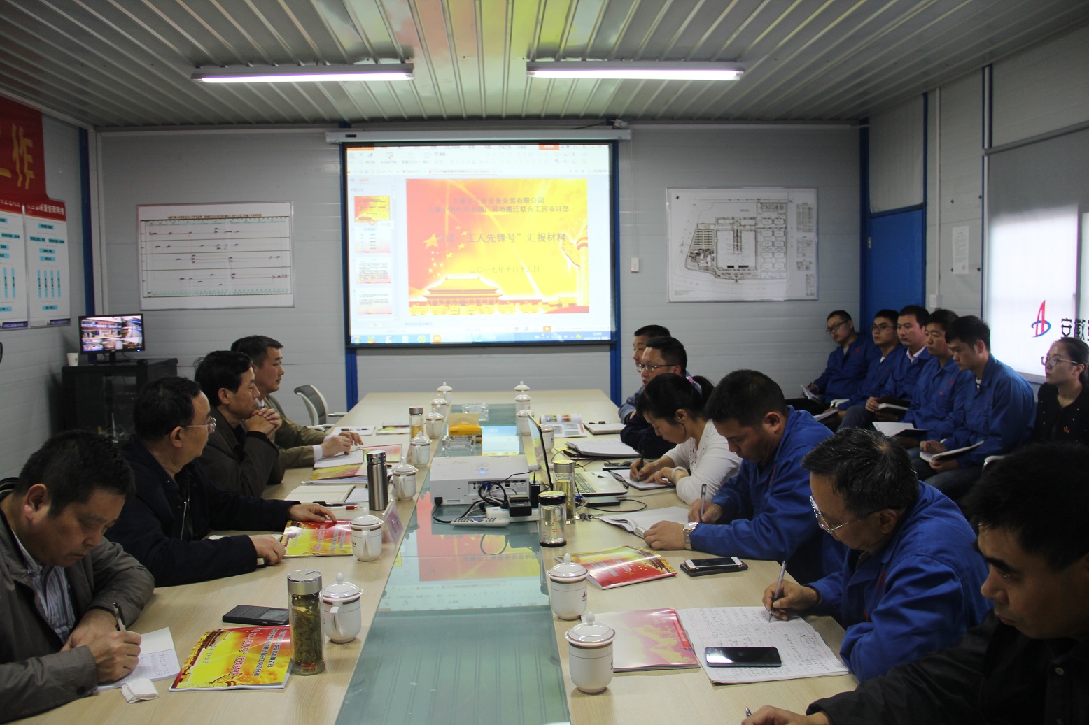 項目經理趙銘亮在會上發言,以創建“工人先鋒號”為契機,開展一流工作,狠抓工程進度和安全生產,嚴把工程質量和材料采購關,管控項目成本和資金;提供一流服務,不斷提高服務質量,讓客戶滿意,爭取在蚌埠卷煙廠項目承接任務超億元;創造一流業績,開展提質增效活動,確保“黃山杯”、爭創“魯班獎”;打造一流團隊,努力打造學習型組織,團結協作和諧共進的團隊。