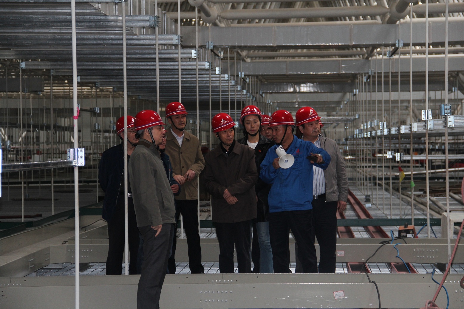接著,胡六中書記對徐曉光一行犧牲中午休息時間來到現場驗收“工人先鋒號”工程表示感謝,這種忘我的工作精神值得我們學習。另外,他表示要進一步注重新技術、新材料的應用,提升管理水平,加強人文關懷,增強職工歸屬感。把蚌埠卷煙廠項目真正建設成為安徽安裝乃至集團公司的示范標桿工程。