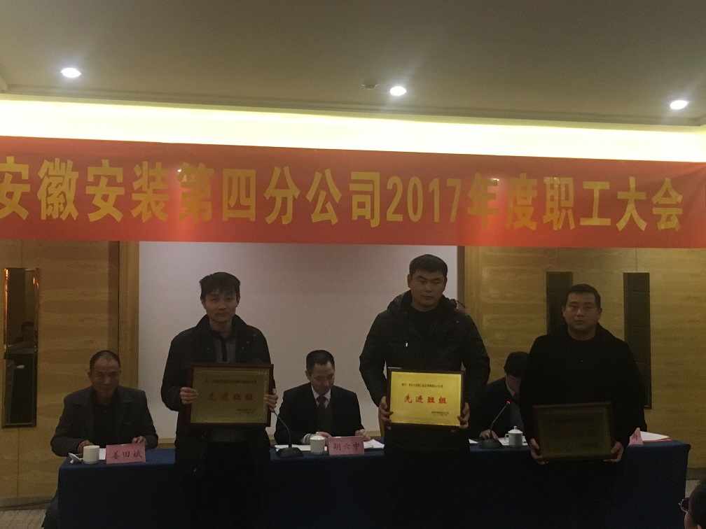2018年2月1日上午,安徽安裝第四分公司召開2017年度職工大會。公司黨委書記、副總經(jīng)理胡六中,紀(jì)委書記、工會主席李寬旭應(yīng)邀出席了大會。