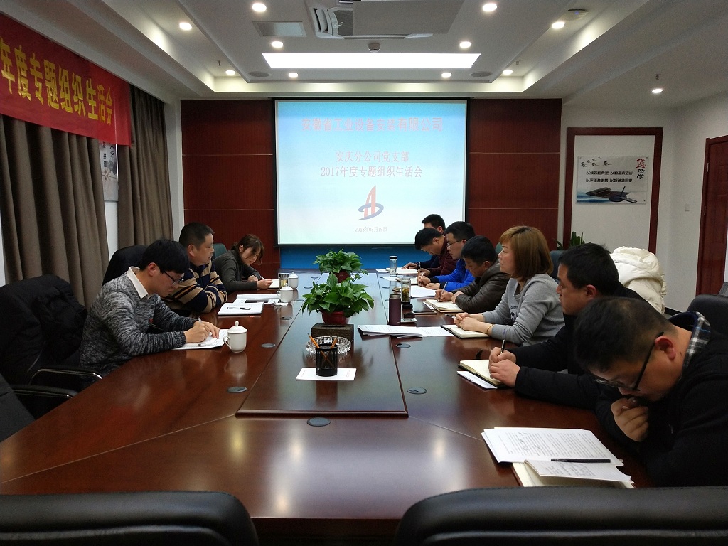 3月19日下午,安慶分公司黨支部組織全體黨員召開了2017年度專題組織生活會,公司董事長、總經理王軍邦,黨委辦公室楊駿輝應邀參加此次會議。會議由分公司黨支部書記劉紅艷主持。