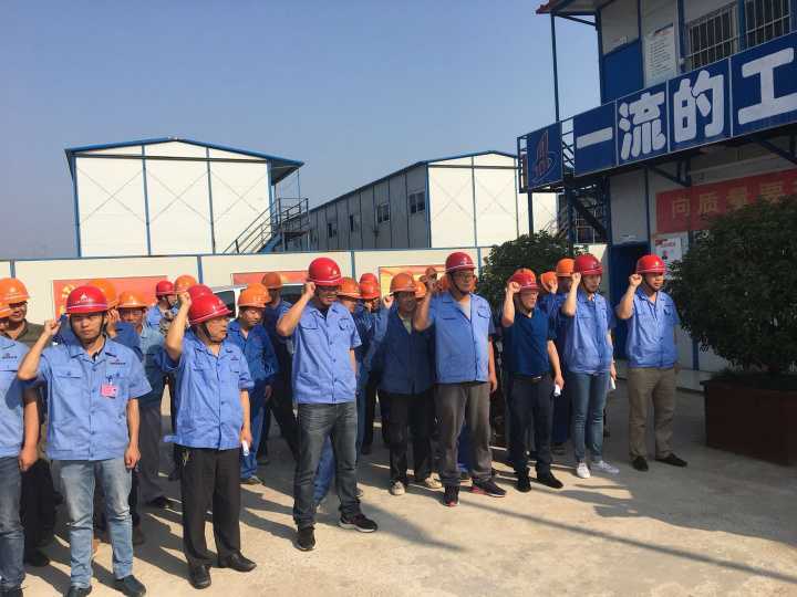 隨著儀式的展開,分公司副經理張漢軍帶領全體人員進行了莊嚴的安全宣誓。接著,分公司總工程師梁興邵現場進行安全知識宣講,分公司工會主席、項目臨時黨支部書記程茂麗隨后宣讀了《關于在安徽中煙蚌埠卷煙廠項目部開展“中煙項目干勁足 安全生產爭先鋒”勞動競賽活動的通知》。最后,項目執行經理郭洋代表項目部表態發言:一定會以本次活動為契機,加強現場安全管理,努力提升項目安全管理水平再上新臺階。
