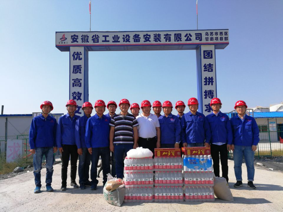 2018年7月21日下午,公司董事長、總經理、黨委副書記王軍邦、總會計師張元斌頂著烈日驕陽在公司總經理助理、西北分公司經理、新疆辦事處主任、項目經理王軍的陪同下,深入新疆烏蘇市西區管廊工程項目部,為堅守在一線的員工送去礦泉水、綠豆、蕎麥、冰糖、藿香正氣水等防暑降溫慰問品。