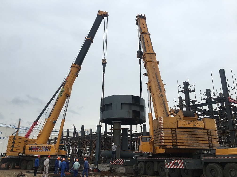 安慶分公司安徽力天環(huán)保科技股份有限公司增塑項(xiàng)目5萬噸/年苯酐裝置項(xiàng)目大型設(shè)備吊裝圓滿成功