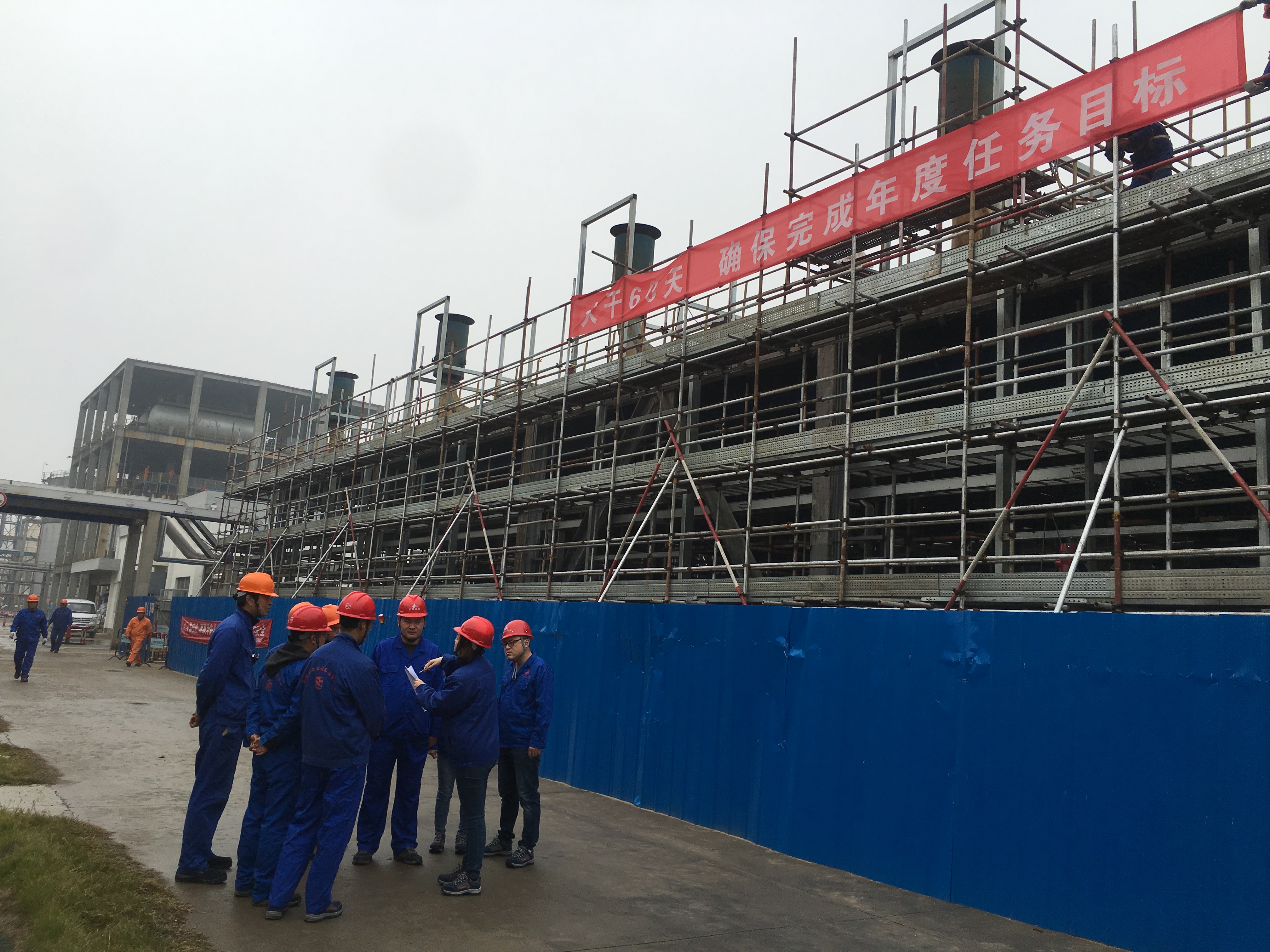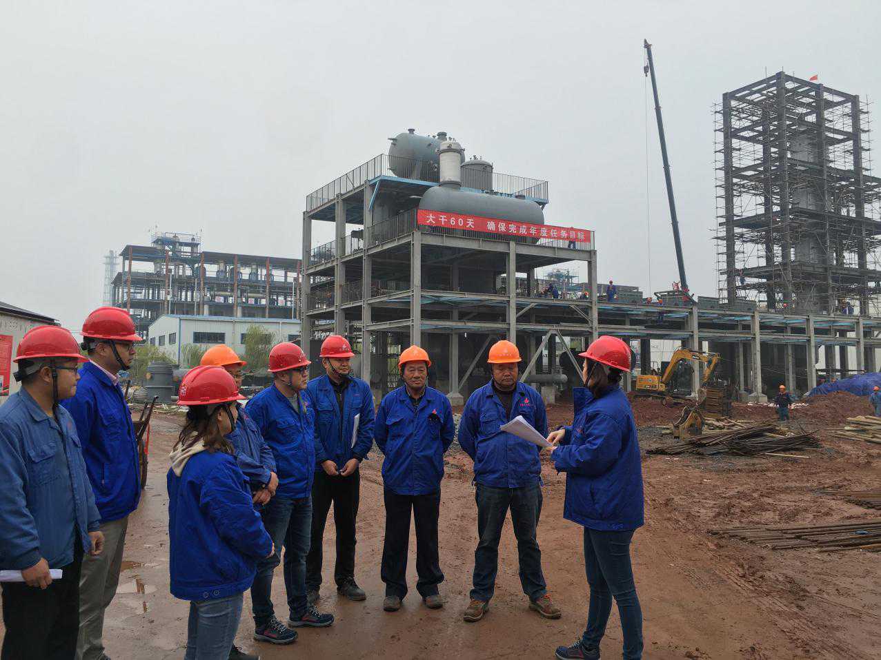 為響應公司“大干60天”勞動競賽活動,把此項活動落到實處,11月15日上午,安慶分公司黨支部書記、工會主席、副經理劉紅艷攜相關管理人員冒著綿綿細雨前往分公司承建的“安徽力天環保科技股份有限公司增塑劑裝置循環產業鏈建設項目5萬噸/年苯酐裝置項目”和“中石化安慶分公司水污部污水處理場鼓風機降噪改造項目”兩個參賽的工程施工現場督導檢查競賽開展情況,以此推進勞動競賽的實施,促進項目的順利完工。