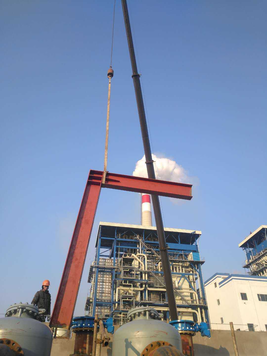 阜陽(yáng)國(guó)禎供熱首站機(jī)電安裝工程蒸汽管道施工內(nèi)容包括Φ630蒸汽管道在8.5m的高空架設(shè)、彈簧支架及槽鋼支架的敷設(shè)、與換熱器進(jìn)出口的對(duì)接等;因施工現(xiàn)場(chǎng)存在場(chǎng)地小、作業(yè)面狹窄等諸多困難,蒸汽管道架空敷設(shè)任務(wù)異常艱巨。此次蒸汽管道吊裝,項(xiàng)目部提前合理部署,多次優(yōu)化方案,在各方力量的通力配合下,齊心協(xié)力,圓滿地完成架空敷設(shè)任務(wù),整個(gè)吊裝過程平穩(wěn)、安全,獲得了業(yè)主方的贊許與肯定。