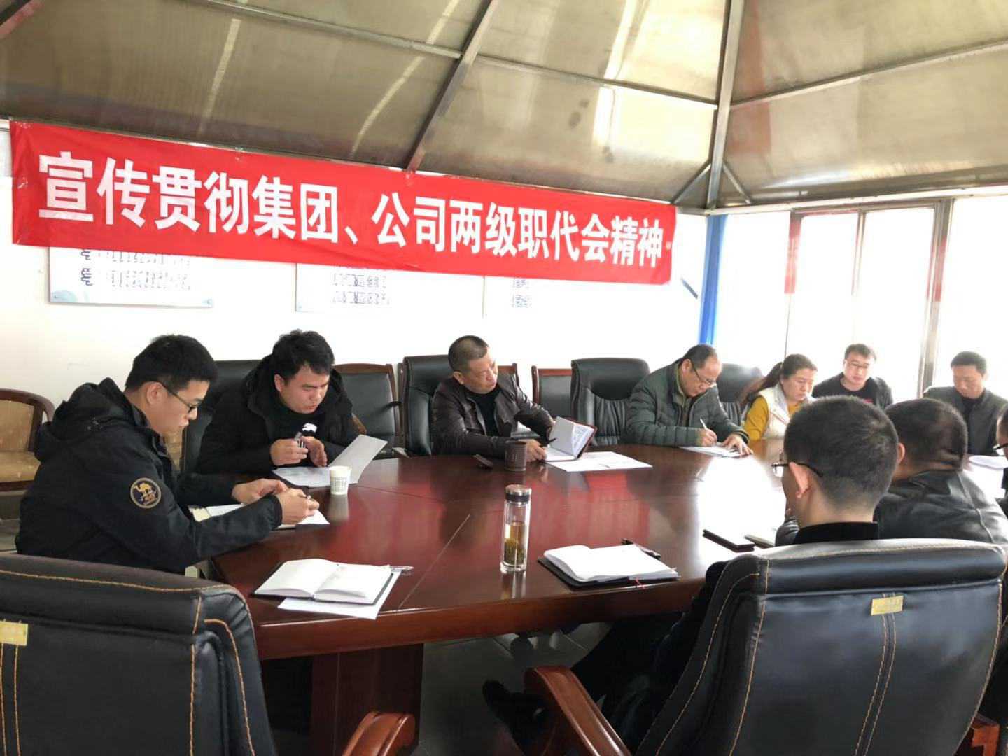 公司總經理助理、分公司經理王軍強調,一是分公司各部門、各項目部要緊密結合分公司實際,把學習貫徹落實兩級職代會精神作為分公司當前政治任務,把思想和行動統一到會議確定的工作思路、奮斗目標上來,將會議精神轉化為工作的動力,切實將兩級職代會精神傳達至分公司每一名職工;二是以兩級職代會的決策部署作為行動綱領,抓好2019年分公司年度各項任務分解,緊跟集團、公司的步伐,以實際行動貫徹落實會議精神;三是要強化措施,狠抓落實。分公司上下認清發展形勢,統一思想認識,增強緊迫感和責任感,搶抓機遇,加快發展,確保各項目標任務落到實處,全面推進分公司2019年各項工作開展。
