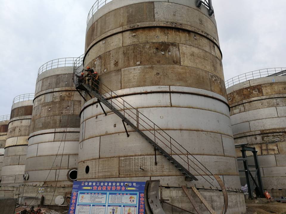 宿州中糧10萬/噸無水乙醇搬遷技改項(xiàng)目發(fā)酵罐盤梯現(xiàn)場制作