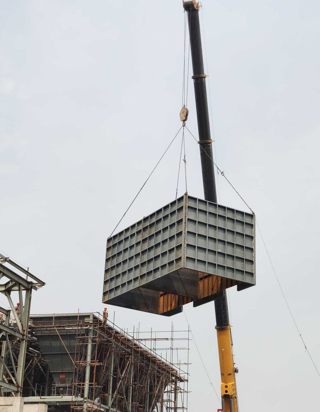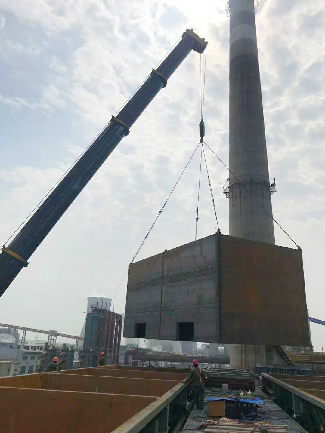 此次反應器中箱體吊裝是臨渙焦化非標件制作安裝工程的重要節點,為下一階段進出口煙道和上箱體的安裝創造了有利條件,獲得業主方、監理的一致好評。