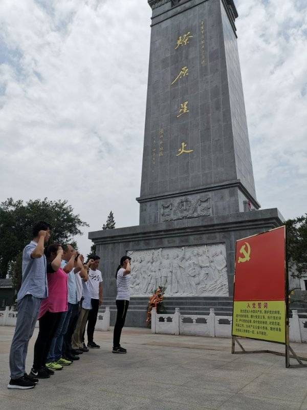 金寨縣位于皖西邊陲、大別山腹地,被譽為“紅軍的搖籃、將軍的故鄉(xiāng)”,是著名的革命老區(qū)。在講解員的帶領(lǐng)下,黨員們參觀了金寨縣革命博物館、金寨縣紅軍紀念堂、劉鄧大軍千里躍進大別山前方指揮部舊址,瞻仰了洪學(xué)智將軍紀念碑、紅軍烈士墓園等。看著一個個紅軍的名字、一件件珍貴的文物、一段段詳盡的史料和一條條悲壯的事跡,大家的思緒仿佛回到了當(dāng)年那段硝煙彌漫的戰(zhàn)爭情景。黨員們憶之所及情之所至,無不為之動容。隨后,在劉伯承元帥親筆題寫的“燎原星火”紀念塔前,全體黨員面對黨旗,重溫了入黨誓詞。