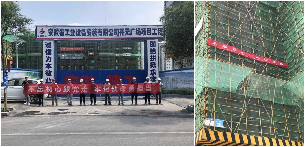 根據公司黨委“不忘初心、牢記使命”主題教育總體工作部署,房建(裝飾)分公司采取多種形式在項目一線做好“不忘初心、牢記使命”主題教育宣傳,努力營造悟初心、守初心、踐初心的濃厚工作氛圍。