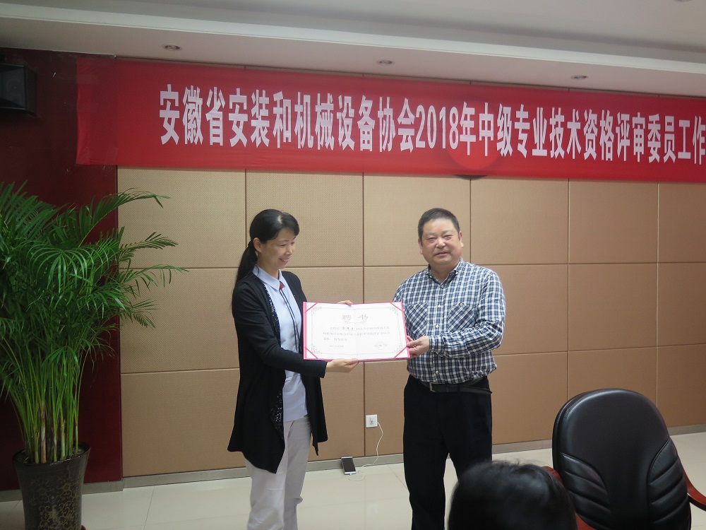 為深入學(xué)習(xí)了解職稱評(píng)審相關(guān)政策,進(jìn)一步提高評(píng)委業(yè)務(wù)素質(zhì)和職稱評(píng)審質(zhì)量,協(xié)會(huì)按照評(píng)審要求,經(jīng)過前期精心準(zhǔn)備召開了本次會(huì)議。首先李會(huì)長宣讀了省人社廳《關(guān)于同意成立機(jī)電安裝和機(jī)械設(shè)備中級(jí)專業(yè)技術(shù)資格評(píng)審委員會(huì)的函》(皖人社函〔2017〕486號(hào)),王會(huì)長依次向評(píng)委們頒發(fā)《中級(jí)專業(yè)技術(shù)資格評(píng)審委員會(huì)》委員聘書。秘書長杜慶梅宣讀省人社廳關(guān)于印發(fā)《安徽省職稱評(píng)審委員會(huì)組織管理辦法》的通知(皖人社發(fā)〔2018〕3號(hào)),現(xiàn)場組織大家學(xué)習(xí)相關(guān)規(guī)定。