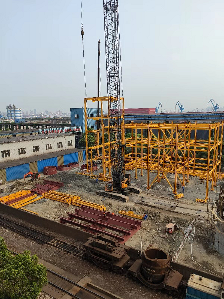 合肥分公司承接的江蘇長強鋼鐵有限公司180m2燒結機煙氣脫硫脫硝除塵超低排放工程,工程地點位于江蘇省江陰靖江工業園區,工程內容包括53米高度的吸收塔安裝、鋼構平臺搭建及設備吊裝安裝等,是一項較為典型的工業設備機電安裝工程項目。