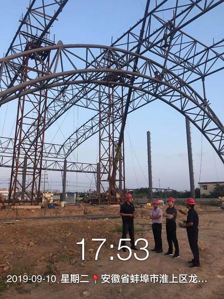 在蚌埠淮河水科院項目調研時,胡六中首先深入施工現場實地查看項目進展情況,認真聽取項目經理張斌對項目工程概況、現場組織、工程進度、施工難點、重點等情況的介紹,并對項目存在的問題予以指導。他指出:淮河水科院項目屬于大跨度管桁架結構,目前正處于施工高峰期,具有一定的施工難度,他要求項目部,一要以現階段正在開展的勞動競賽活動為契機,團結一心,確保工期、安全、質量;二要加強施工力量,確保形象進度,根據施工計劃倒排施工工期,兼顧項目成本;三要倡導項目經理負責制,關注員工所思所想,注重加強項目團隊建設;四要樹立品牌意識,確保該項目創建“黃山杯、安裝之星”等榮譽,同時做好項目二次經營,要堅持“建一個項目,樹一個精品,交一方朋友,鞏固一方市場,培養一個團隊”;五要解放思想,正視困難,堅定信心。