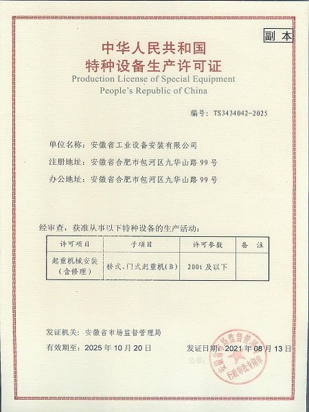 特種設(shè)備安裝改造維修許可證(起重機(jī)械)
