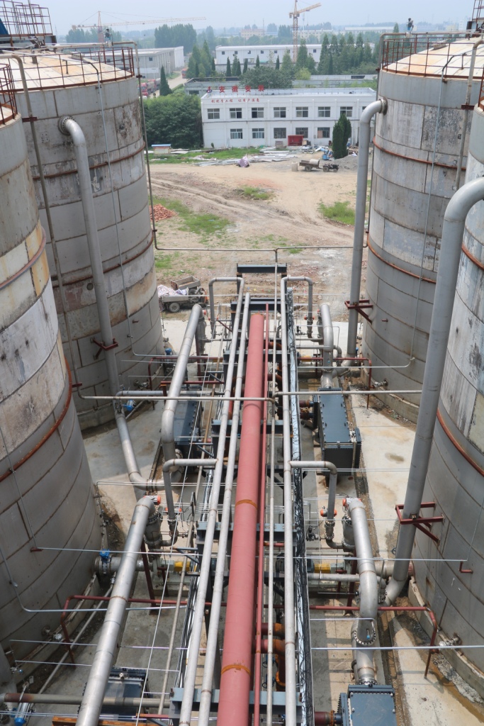 2018年10月,蚌埠分公司中標宿州中糧無水乙醇搬遷技改項目。該項目為發酵工序區域以及酒精罐區、混配站裝置區域裝置利舊設備拆遷(保護性拆除)轉運(含各類罐22臺、離心機組3套)非標設備制作安裝,設備總重量約1055噸,工藝管道約4500米及電氣儀表專業施工。工程總造價1584萬元。