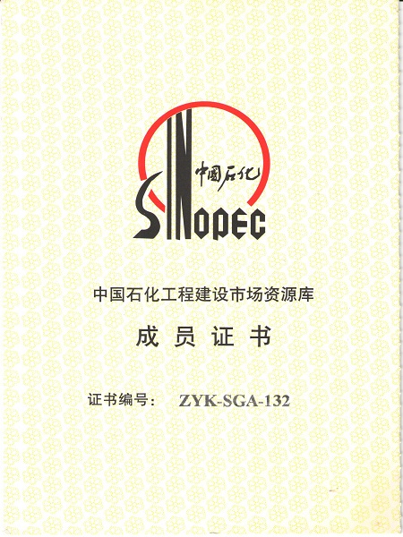 中國石化工程建設市場資源庫成員證書