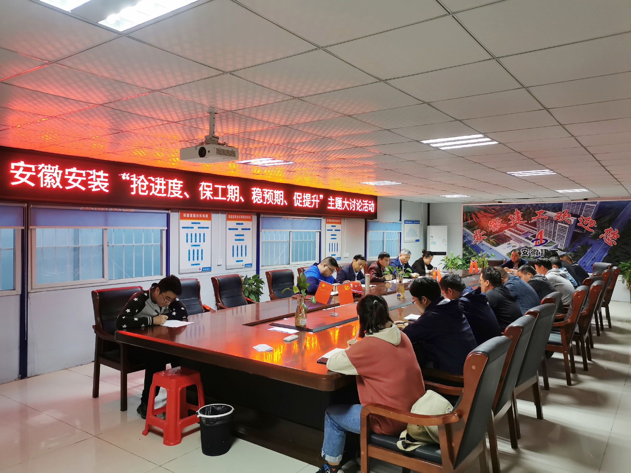 為認真貫徹集團公司“搶進度、保工期、穩預期、促提升”勞動競賽活動精神,10月10日下午,安徽安裝公司圍繞“不能按時交工為恥辱”的履約意識,在阜陽潁東區中醫院項目部會議室,組織開展“搶進度、保工期、穩預期、促提升”主題大討論活動。公司副總經理高飛,紀委書記、工會主席李寬旭,總工程師吳繼成,公司相關部門負責人,房建分公司領導班子成員,項目經理、技術負責人等共計20余人參加會議,會議由李寬旭主持。