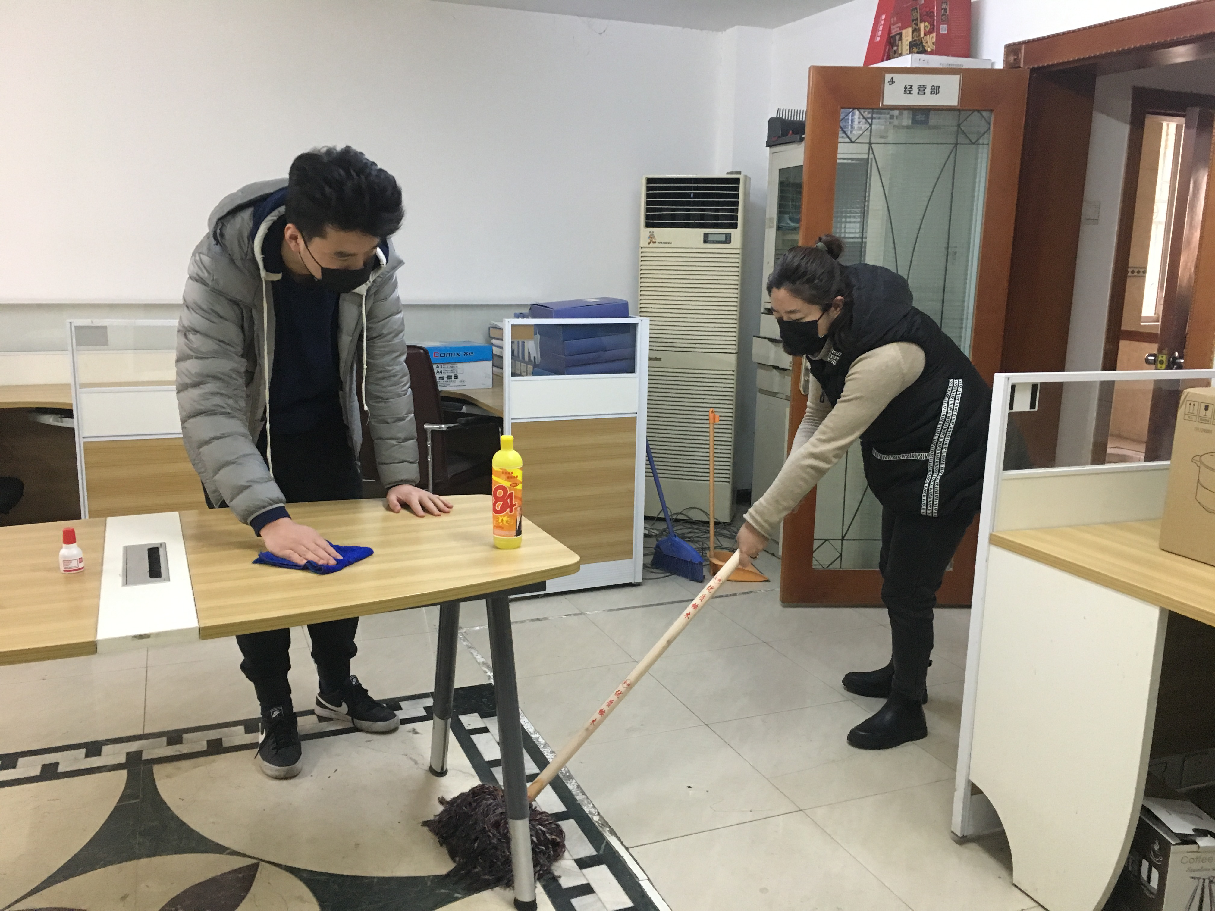 在分公司工會的號召下,大家紛紛開始了辦公室的消毒清理活動,針對個人辦公室衛生及公共區域進行了整體消毒和清理,對于整個辦公室進行了徹底的大掃除。
