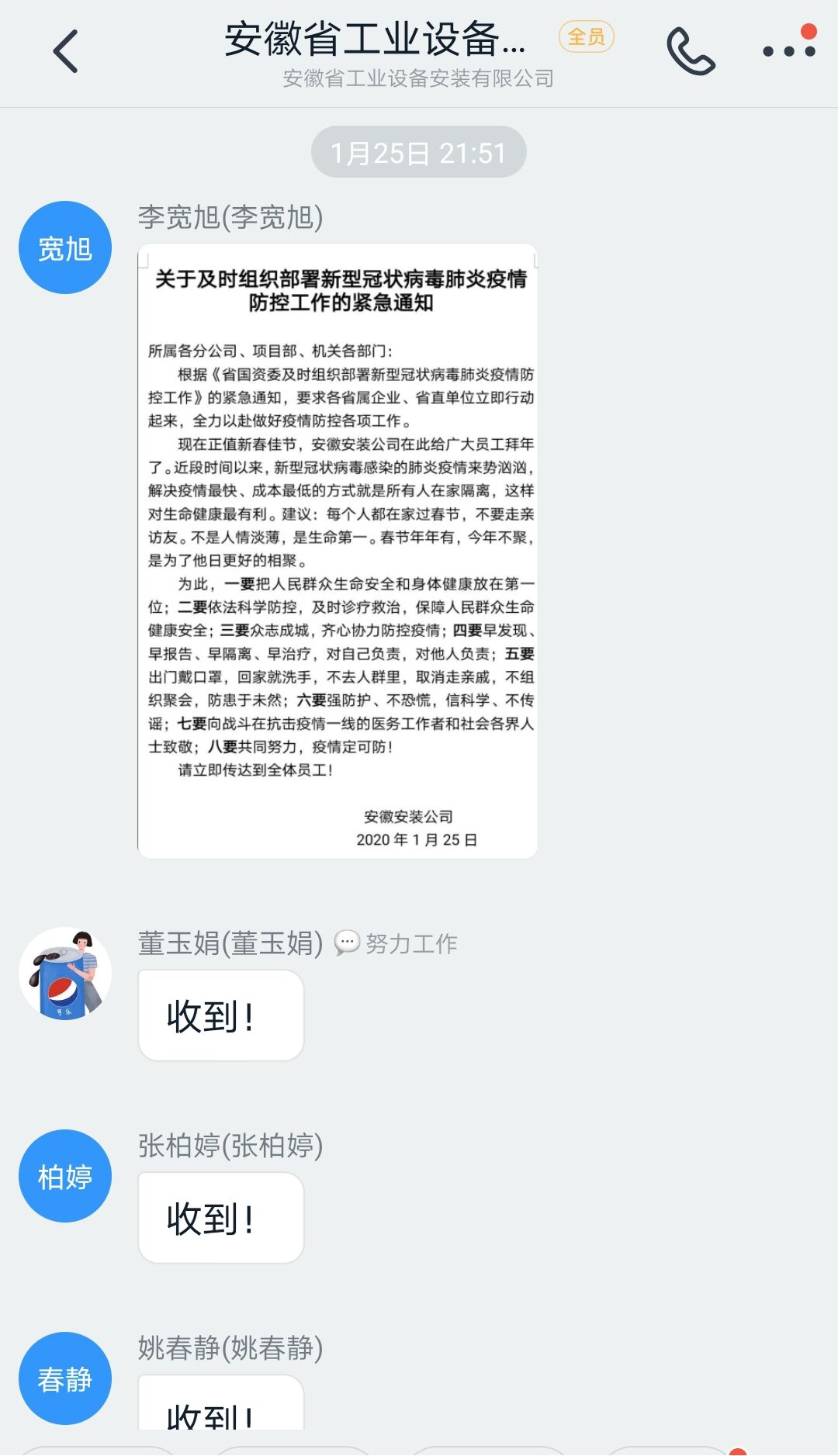 根據(jù)《省國資委及時組織部署新型冠狀病毒肺炎疫情防控工作》的緊急通知,要求各省屬企業(yè)、省直單位立即行動起來,全力以赴做好疫情防控各項工作,1月25日發(fā)出緊急通知,部署具體要求,立即傳達到全體員工。