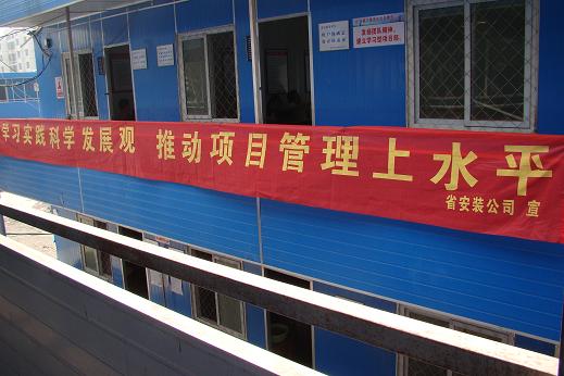 省政務(wù)服務(wù)中心及綜合樓和合肥中心醫(yī)院項(xiàng)目屬省、市重點(diǎn)工程之一。由多家大中型施工企業(yè)共同承建。我公司承擔(dān)的安裝工作量分別在1582萬和2800萬以上,是具有相當(dāng)規(guī)模和社會(huì)影響的工程項(xiàng)目。合肥項(xiàng)目黨支部在開展第二批實(shí)踐科學(xué)發(fā)展觀活動(dòng)中,因地制宜地開展宣傳活動(dòng)。分別在這兩個(gè)項(xiàng)目施工現(xiàn)場(chǎng)懸掛了《深入開展學(xué)習(xí)實(shí)踐科學(xué)發(fā)展觀活動(dòng)》和《學(xué)習(xí)實(shí)踐科學(xué)發(fā)展觀推動(dòng)項(xiàng)目管理上水平》的橫幅標(biāo)語(yǔ)。目前是整個(gè)施工現(xiàn)場(chǎng)開展學(xué)習(xí)實(shí)踐科學(xué)發(fā)展觀活動(dòng)中唯一在現(xiàn)場(chǎng)宣傳的一家施工企業(yè)。