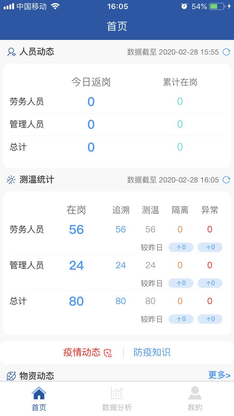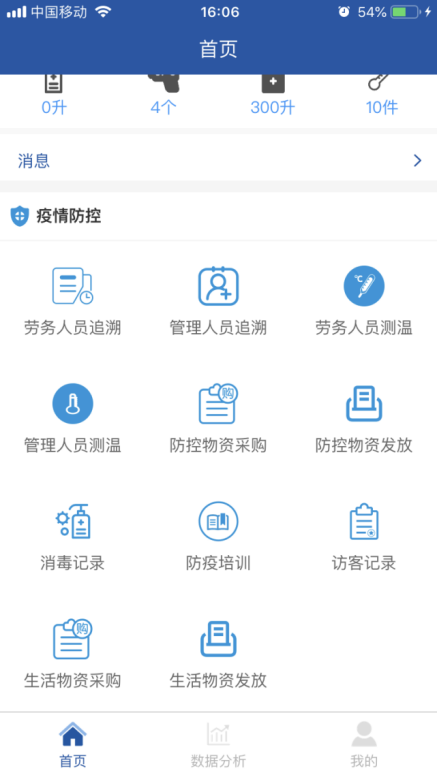 項(xiàng)目全面推行“返崗復(fù)工疫情防控系統(tǒng)”APP。主頁(yè)面包括勞務(wù)人員追溯、勞務(wù)人員測(cè)溫、防控物資采購(gòu)、消毒記錄、疫情培訓(xùn)等11個(gè)專題版面,通過(guò)這些功能可線上及時(shí)填報(bào)人員返崗日期、體溫、癥狀及是否為留守人員等詳細(xì)信息,還有項(xiàng)目部的疫情物資采購(gòu)情況、環(huán)境衛(wèi)生的消殺情況等相關(guān)信息,使上線人員時(shí)時(shí)了解疫情防控動(dòng)態(tài),充分借助信息技術(shù)手段,全力打贏疫情防控“戰(zhàn)役”。 借助這一平臺(tái)確保項(xiàng)目部實(shí)時(shí)、準(zhǔn)確、有效地掌握現(xiàn)場(chǎng)人員的健康情況,助力疫情防控工作。