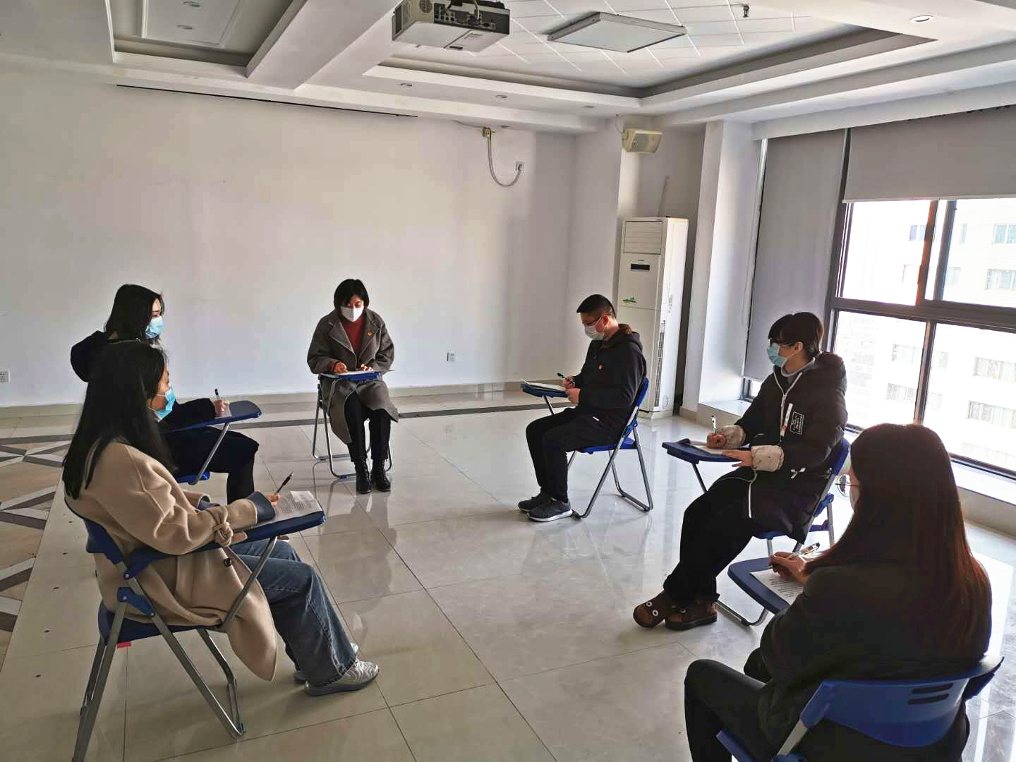 311日下午,機關團支部召開理論學習會,學習宣貫集團、公司兩級職代會精神和疫情防控相關文件,會議由團支部書記胡欣欣主持。為嚴格落實好疫情防控工作要求,團支部在召開會議之前,對會場做好衛生清掃、消毒通風等工作,同時桌椅間隔一米以上。