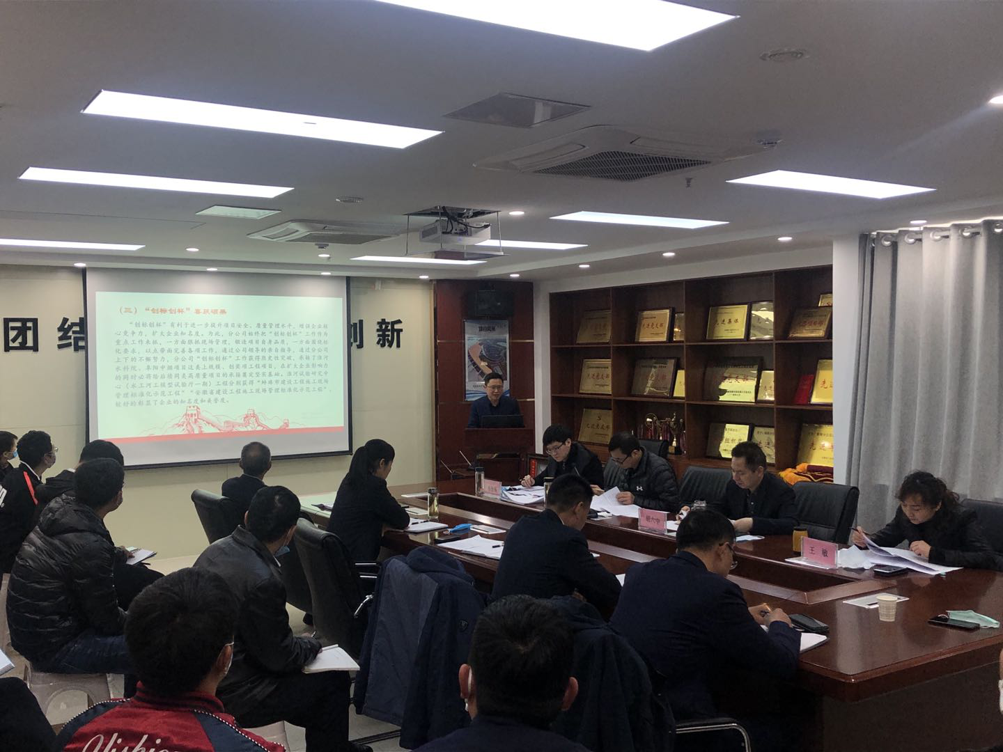 胡六中對此次會議進行了點評,認為蚌埠分公司2019年工作有特色、有亮點,對2020年工作謀劃思路清晰,目標明確,給予充分肯定,并對分公司提出三點意見:全方位大力宣貫兩級職代會精神,下一步要重點在選人用人、薪酬待遇等方面向一線、關鍵崗位、偏遠地區傾斜;要堅持發展自營,管控聯營,規范聯營合作模式;要推行全面復盤管理,把經驗固化;要確保穩中求進的總基調;加強項目管理,樹立工期就是成本和效益的理念,加強勞務、招標等管理;要加大人才招聘和員工教育培訓,一切工作都要以人為本,不忘初心;要加強機關效能建設,提高服務意識。二是要堅持發展是第一要務。正確處理好發展和防風險的關系;正確處理好蚌埠安建經開設備安裝有限公司與蚌埠分公司的關系;處理好三供一業和老舊小區改造的關系。三是要團結一致、齊心協力,樹立信心,鼓足干勁,滿產超產,確保完成全年目標任務。