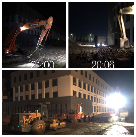夜幕之下,照明燈前,界首出口企業培育基地一期工程現場,挖掘機、運輸車、壓路機仍在高效運轉,管理人員仍在靠前指揮。該項目竣工日期為5月30日,為把失去的工期“搶回來”,項目部自3月2日復工后,工作強度明顯增大加重,但全體參建人員不畏苦、不懼難,自我加壓、逆勢而上,倒排施工計劃、優化作業環節、調配各方力量,并聯推進、協同作戰,強化管控嚴防漏洞。當遇到重要工序施工時,即采取白天黑夜兩班倒連續作業模式,以全力保障工期進度和質量;為掀起搶工大干熱潮,確保工期目標按時完成,分公司在項目部組織開展了“大干45天”勞動競賽。無數個日夜堅守,苦干實干,在復工后的近兩個月里,現場雨污水管網施工已全部完成,道路施工水穩層也已結束。