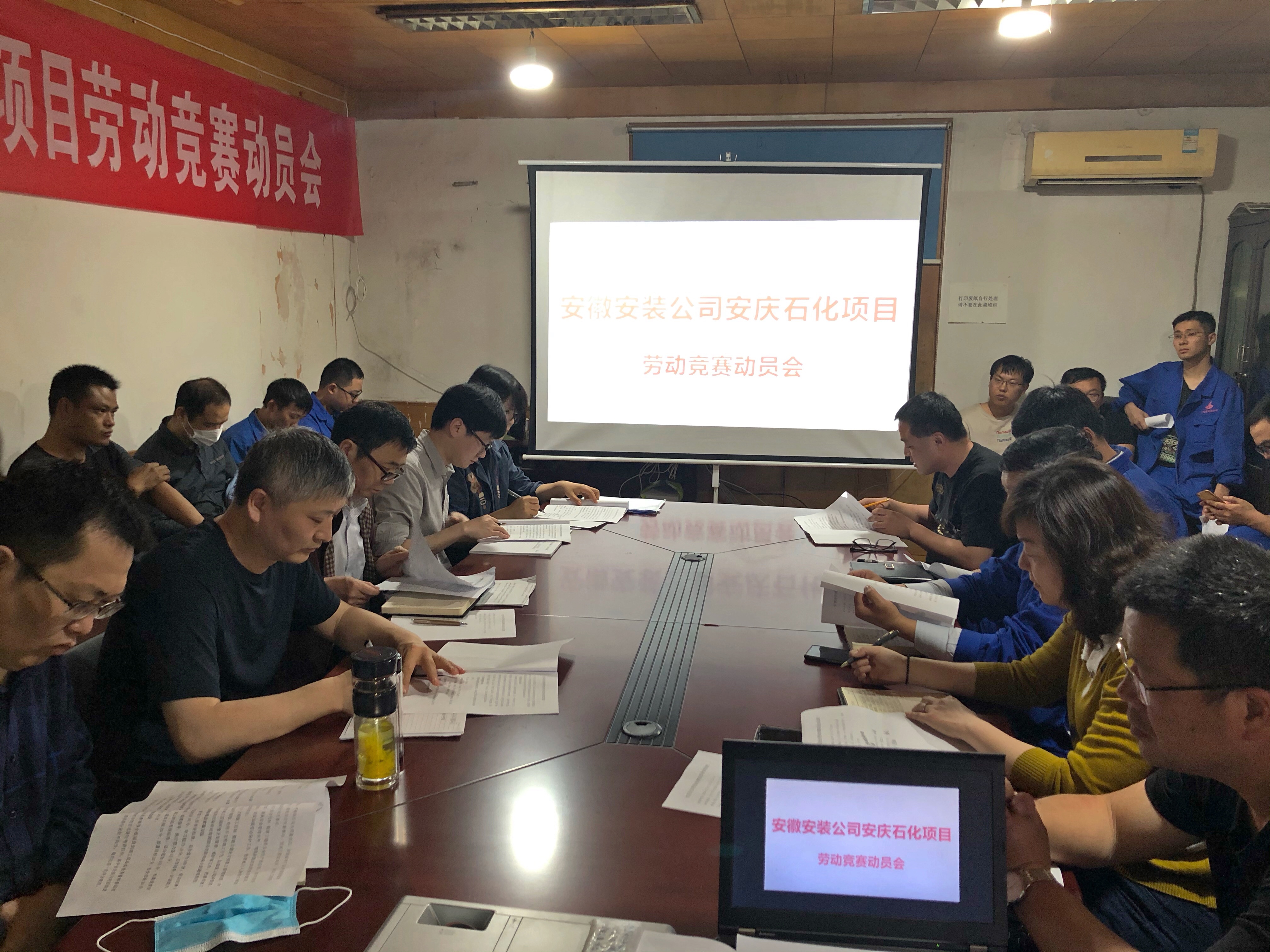 為了充分調(diào)動(dòng)廣大職工的積極性和創(chuàng)造性,全面完成安慶石化框架協(xié)議項(xiàng)目生產(chǎn)任務(wù),把疫情損失奪回來,安徽安裝開展以“抗疫情、促進(jìn)度、穩(wěn)預(yù)期、保增長(zhǎng)”為主題的勞動(dòng)競(jìng)賽。5月7日下午,公司紀(jì)委書記、工會(huì)主席李寬旭、總工程師吳繼成等相關(guān)領(lǐng)導(dǎo),安慶分公司領(lǐng)導(dǎo)班子成員、項(xiàng)目管理人員和施工班組長(zhǎng)共40多人參加了“安慶石化框架協(xié)議項(xiàng)目”勞動(dòng)競(jìng)賽動(dòng)員會(huì)。