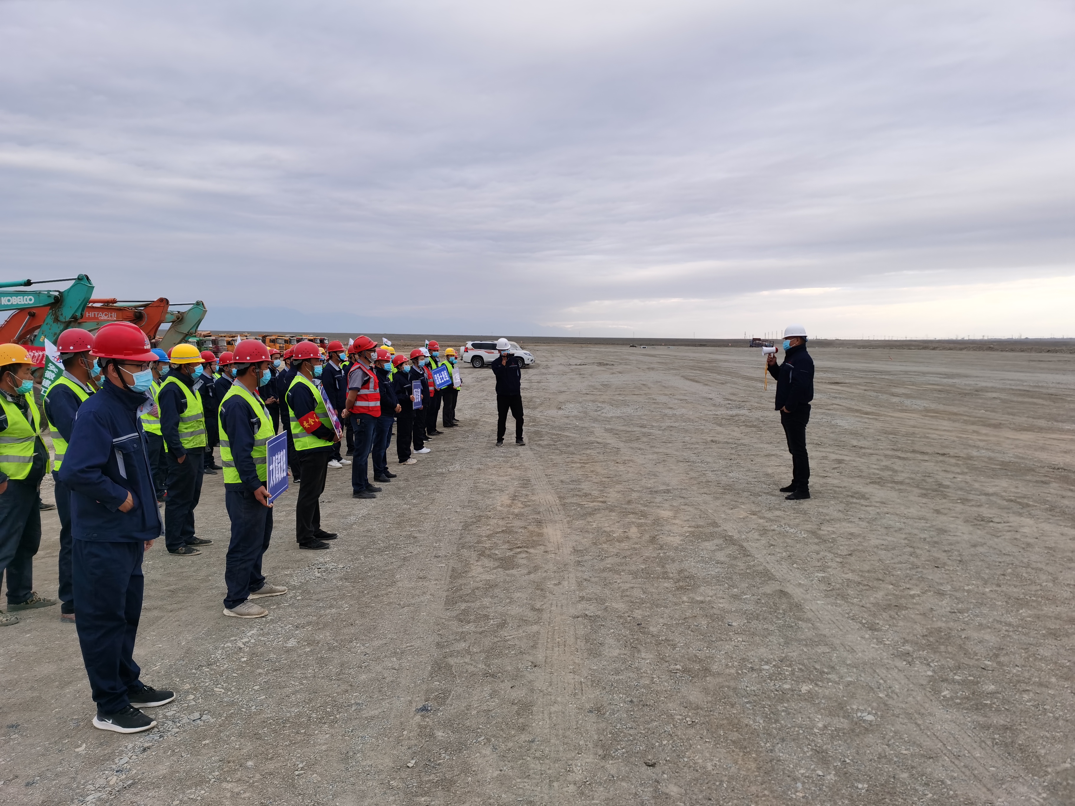 由于疫情影響,項目開工日期延遲近兩個月,為進一步調(diào)動參建人員的積極性和創(chuàng)造性,5月6日,項目部開展“四比四創(chuàng)、大干90天”勞動競賽活動,比施工進度,創(chuàng)最快建設速度;比工程質(zhì)量,創(chuàng)優(yōu)質(zhì)工程;比安全文明,創(chuàng)安全生產(chǎn)無事故;比成本效益,創(chuàng)良好企業(yè)形象。以競賽促生產(chǎn)、促安全、促管理、促效益、促發(fā)展,有效形成“比、學、趕、幫、超”的火熱生產(chǎn)局面。5月份的烏蘇市,白天氣溫已達三十度以上,盡管如此,每一位參建人員每天堅持工作十四個小時,偌大的施工現(xiàn)場,近百輛工程機械緊張作業(yè),挖掘機、推土機、壓路機的轟鳴聲震耳欲聾、重型卡車來回穿梭蕩起滾滾煙塵......截至目前,蓄水池壩體填筑已完成232700m3,完成產(chǎn)值約3000萬元,實現(xiàn)節(jié)點任務滿產(chǎn)超產(chǎn),切實做到“兩手都要抓、兩手都要硬、兩戰(zhàn)都要贏”。