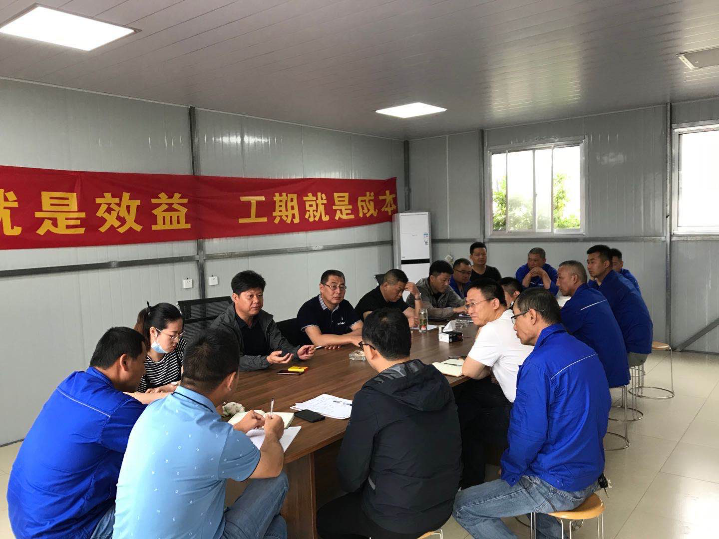 調研組來到項目施工現(xiàn)場,詳細聽取了關于工程安全生產、工程進度、工程款回收以及內部采購合同資金支付流程等方面情況的具體匯報。