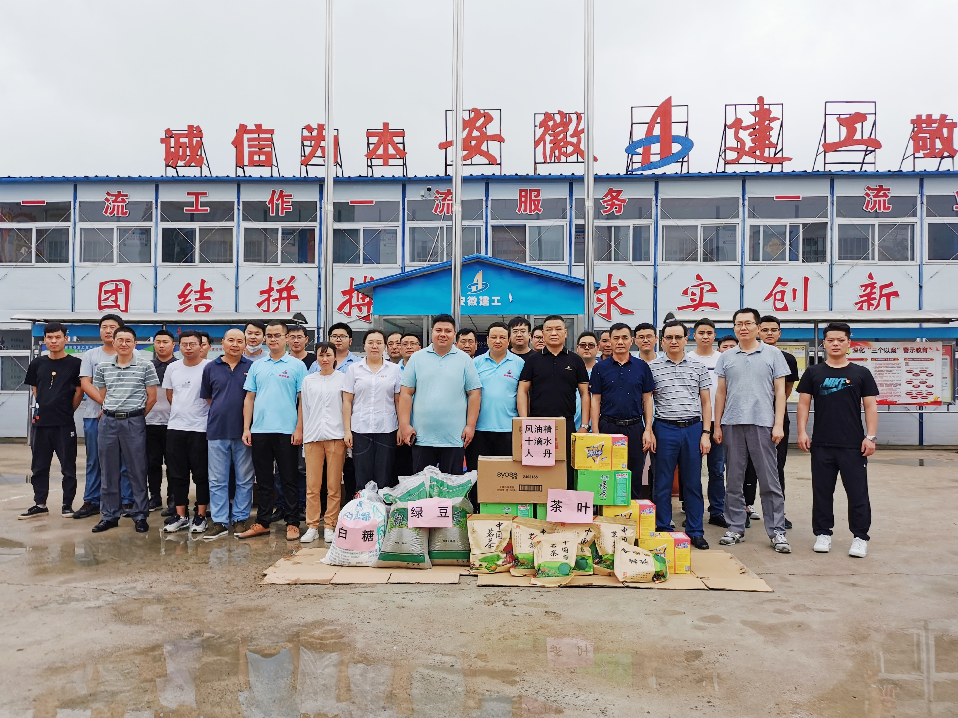 7月15日上午,公司領導深入蚌埠分公司淮河水科院項目部施工現場,為一線員工送去綠豆、白糖、茶葉、藥品等夏季防暑降溫物品。查看了施工現場管理、辦公生活環境,悉心詢問大家的工作生活情況,對項目部職工不懼高溫、堅守一線的奉獻精神予以充分肯定。要求項目部要切實抓好收尾工程的安全、質量、結算工作,尤其要抓好項目的創優創杯工作。