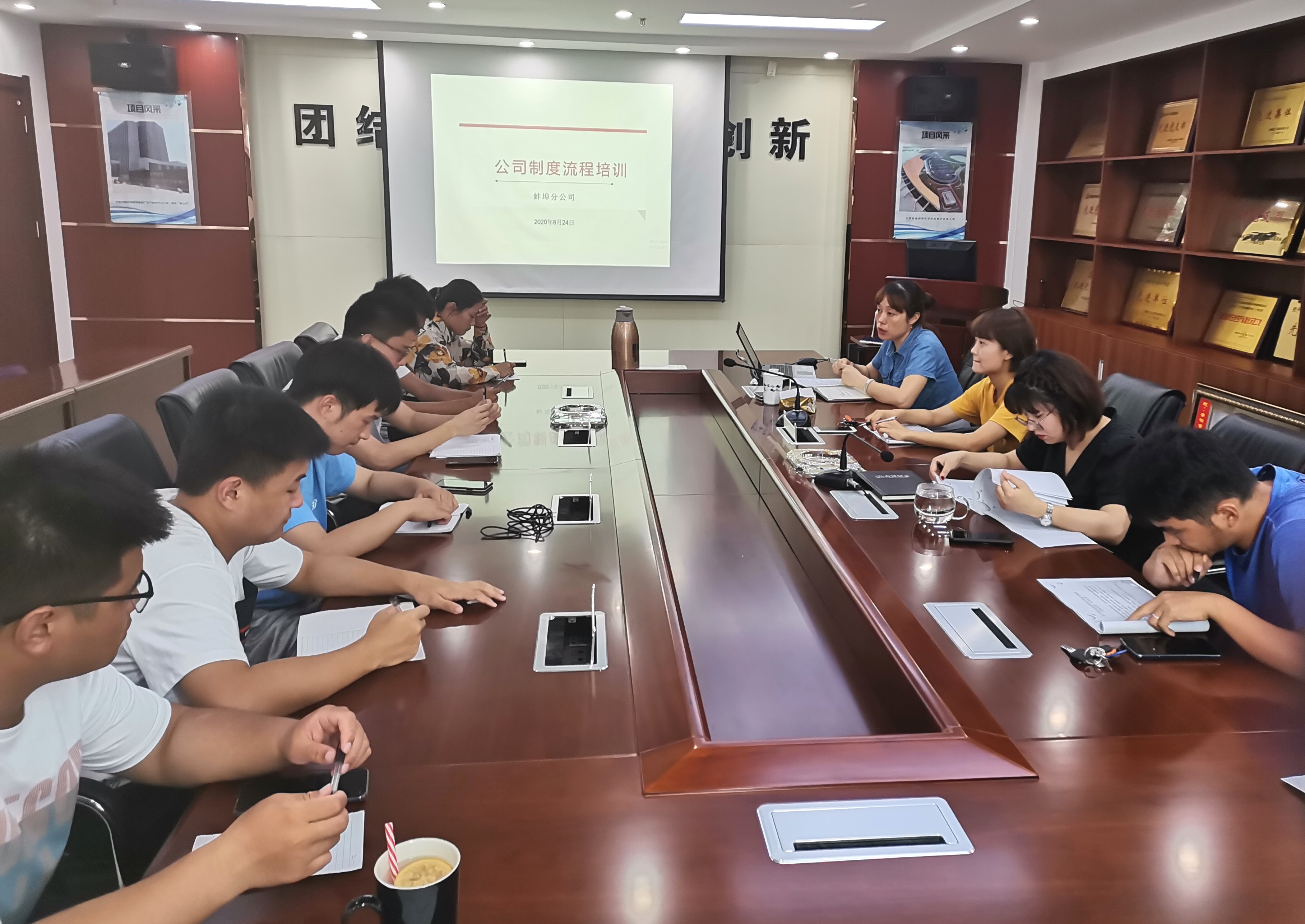 為幫助員工盡快了解公司規章制度、提高工作效率,8月24日下午,蚌埠分公司在會議室舉辦了公司相關制度流程培訓學習,來自分公司近三年內入職的17名員工參加培訓。培訓會由分公司黨支部書記程茂麗主持,分公司相關部門負責人進行授課。