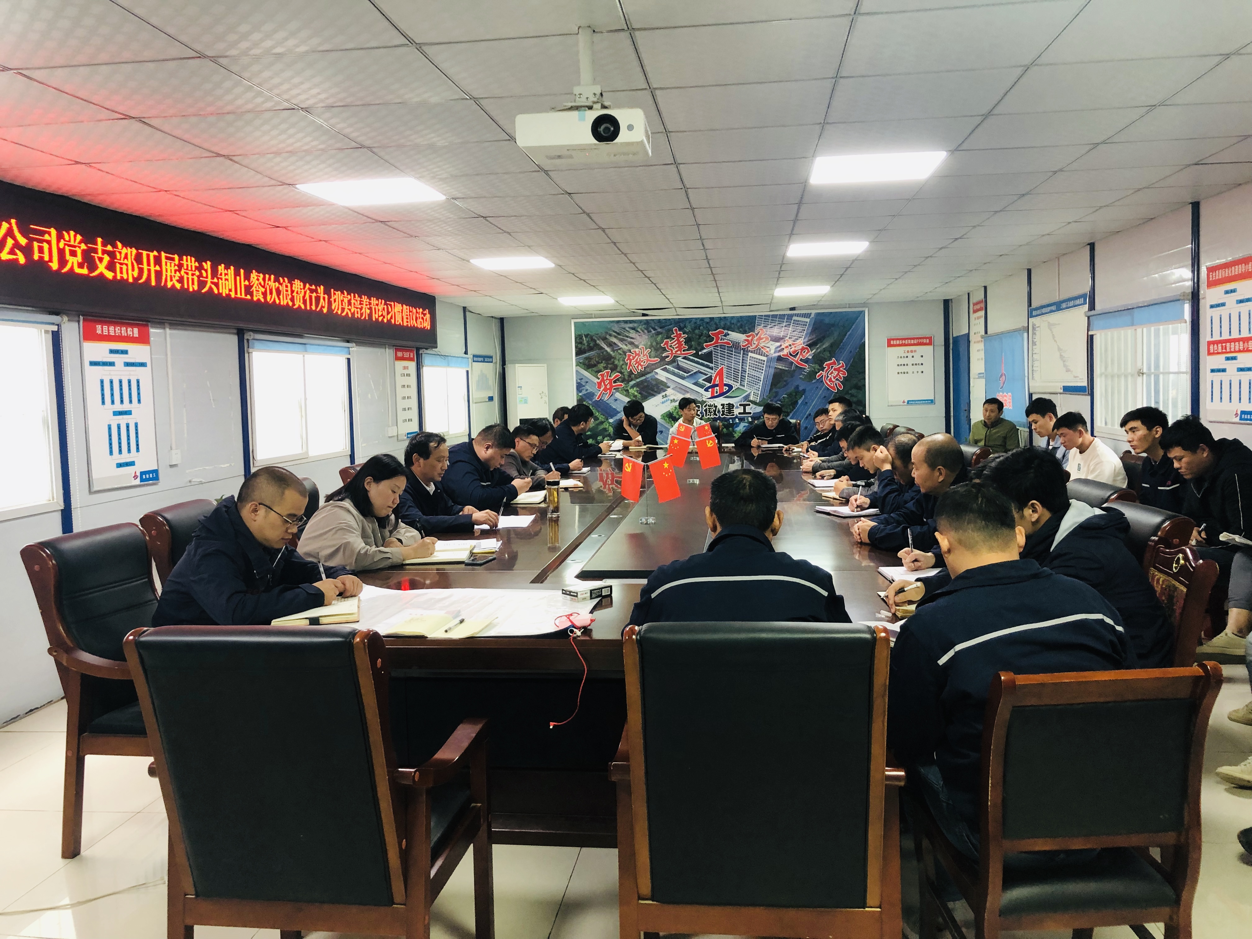 會議強調要扎實做好學習宣傳貫徹習近平總書記考察安徽重要講話精神,把工作延伸到生產一線基層項目部,推動習近平總書記考察安徽重要講話精神深入人心。同時也要高度重視習近平總書記制止餐飲浪費重要行為指示,項目部黨員要發揮黨員先鋒模范作用,在厲行節約反對浪費方面,特別是餐飲浪費上走在前、作表率,自覺將勤儉節約反對浪費的理念內化于心、外化于行,讓勤儉節約的中華美德代代傳承。