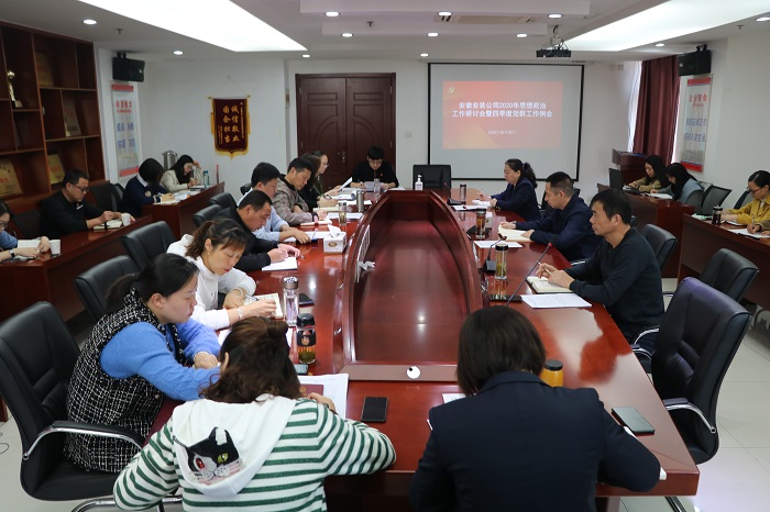 10月30日上午,安徽安裝公司召開2020年思想政治工作研討會暨四季度黨群工作會議,公司黨委書記、董事長胡六中,紀委書記、工會主席李寬旭出席會議。所屬各黨支部、工會、共青團負責人,黨群部門工作人員參加會議,會議以視頻方式召開。