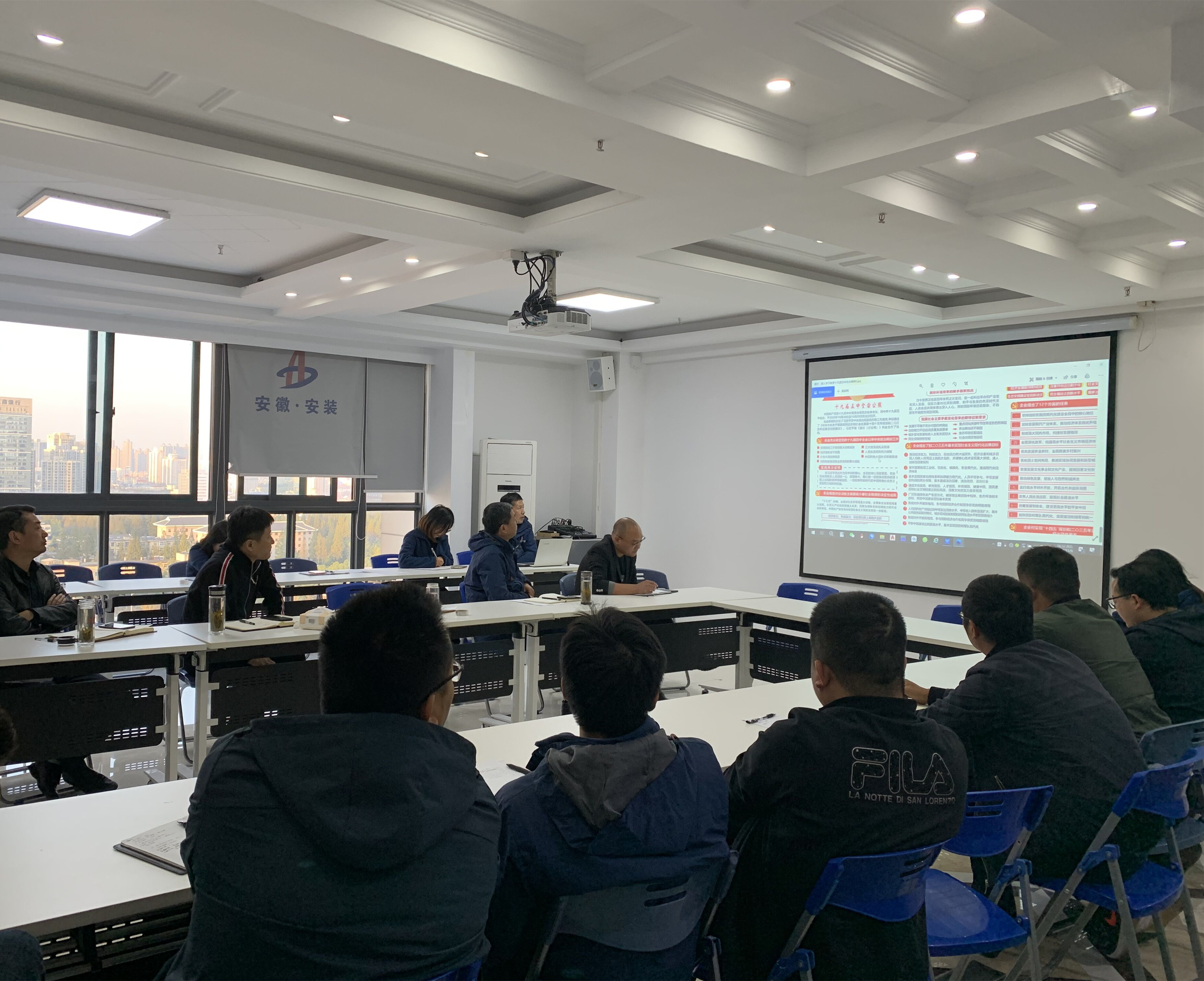 為深入學習黨的十九屆五中全會精神,貫徹宣傳黨的大政方針,11月6日合肥分公司黨支部組織舉行十九屆五中全會專題理論學習擴大會,分公司領導班子成員、支委委員、入黨積極分子、機關全體工作人員參與會議,會議由支部書記胡迎東主持。