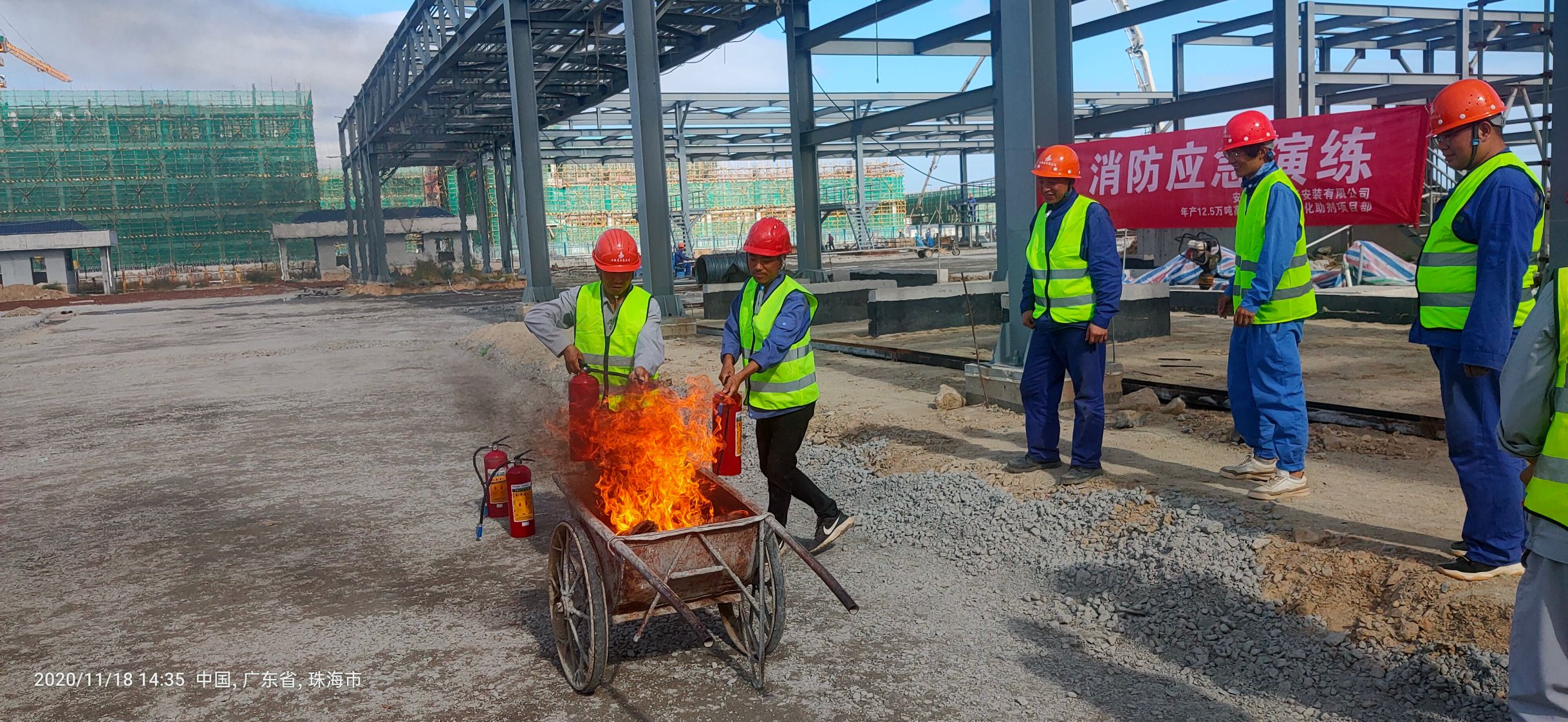 為了進一步做好項目現場安全工作,增強施工人員的消防安全意識,利用“消防日”活動契機,11月18日,西北分公司珠海利安隆項目部組織員工開展了“冬季消防應急演練”活動。此次演練活動由項目部安全負責人、各班組組長及生產工人共同參加。