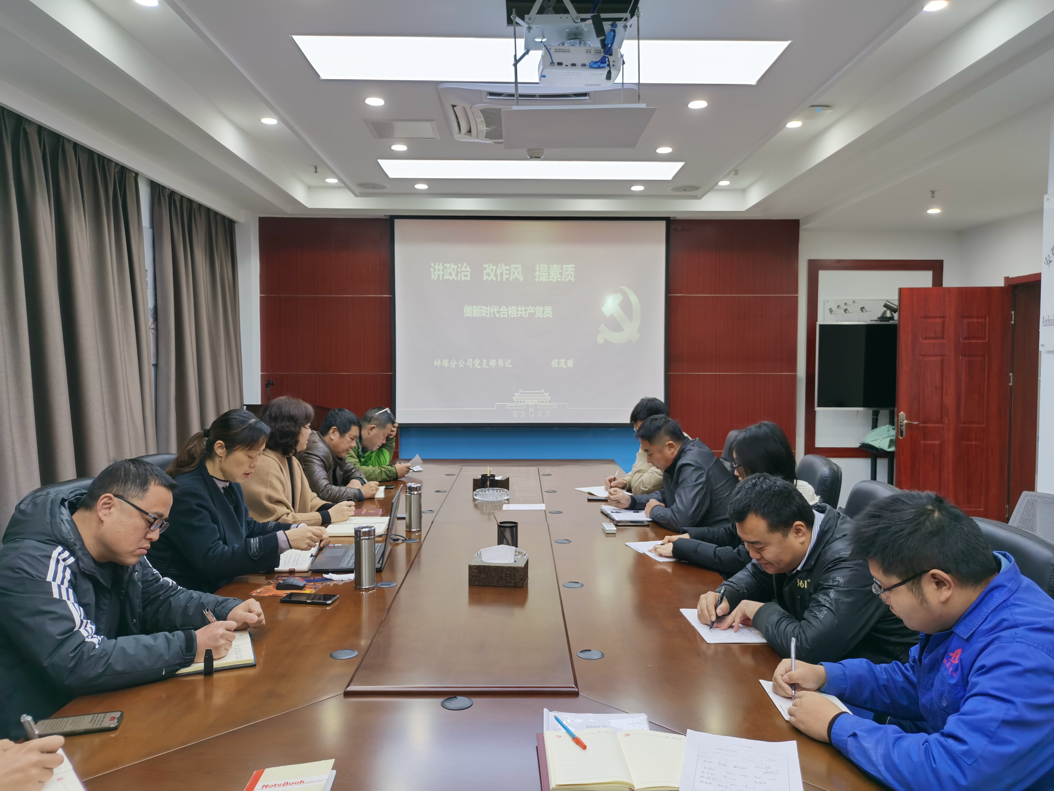 1127日,蚌埠分公司黨支部書記程茂麗赴安慶分公司以《講政治 改作風 提素質——做新時代合格共產黨員》為題,給大家講了一堂生動的專題黨課。分公司領導班子成員、全體黨員、青年團員、各科室負責人及機關辦公室人員參加本次黨課學習。