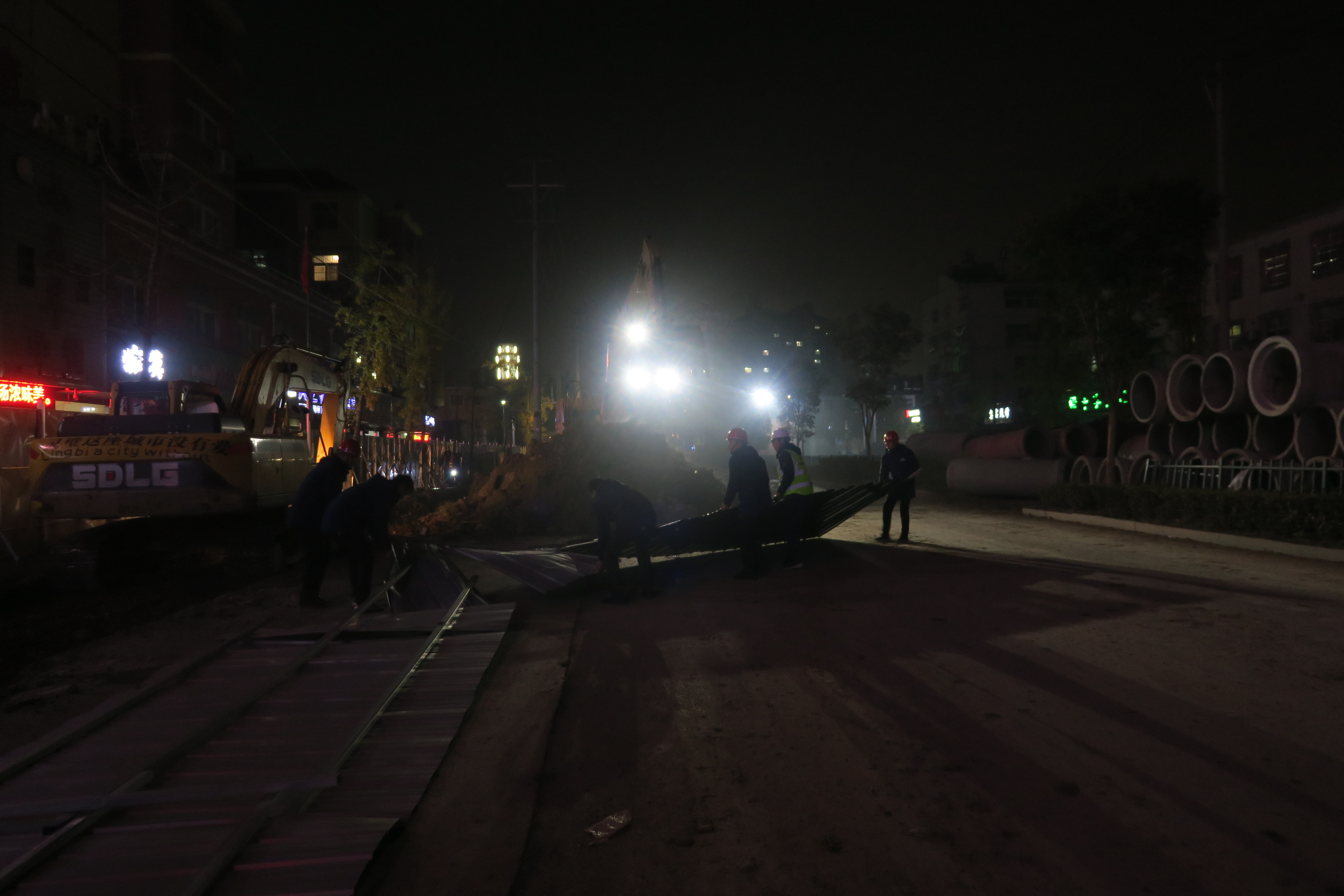 冬日的夜,愈深愈冷,北風嗖嗖的刮過,讓人禁不住地打起寒顫。但在合肥分公司靈璧縣的迎賓大道上,深夜里的12點后,忙碌的工人們依舊沒有停歇;為了趕工期搶進度,他們披星戴月、無懼風雨,他們挑燈夜戰、白黑連軸轉,他們正在以時不我待的奮斗姿態向著2020年產值目標進行最后的沖鋒。