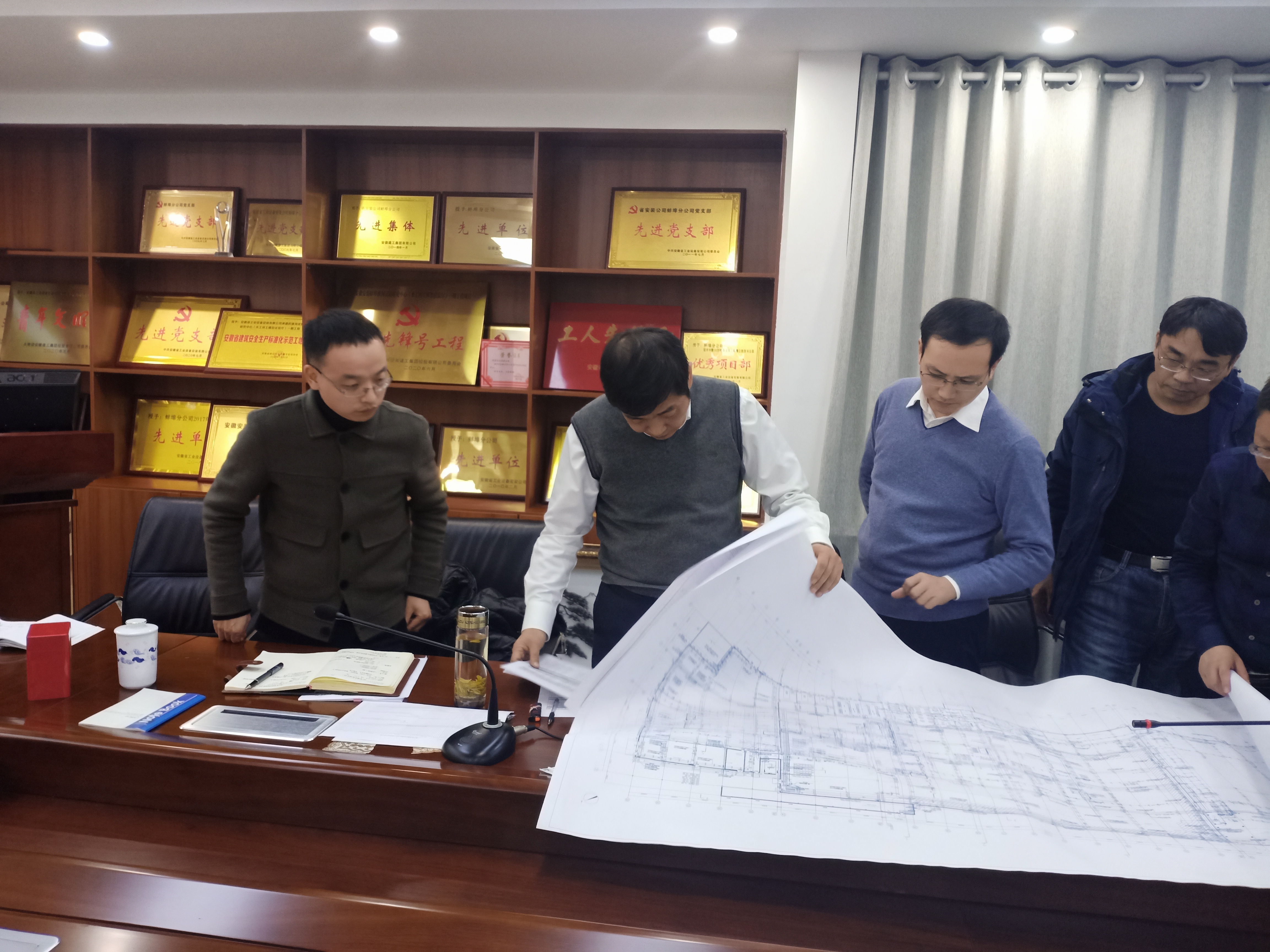 會上,劉安俊分別聽取了項目電氣、設備、工藝管道安裝和調試等專業施工負責人近幾日工作完成情況的匯報。期間,不時的詢問各專業工序搭接及進度等情況,并對照圖紙就大家提出的問題和困惑給予現場解答和相關技術指導。會議中,大家圍繞工作面如何有序展開,工作量統計,關鍵節點、材料設備采購及進場時間,勞動力安排,機械設備使用等方面展開熱烈討論,進一步優化方案,達成共識。