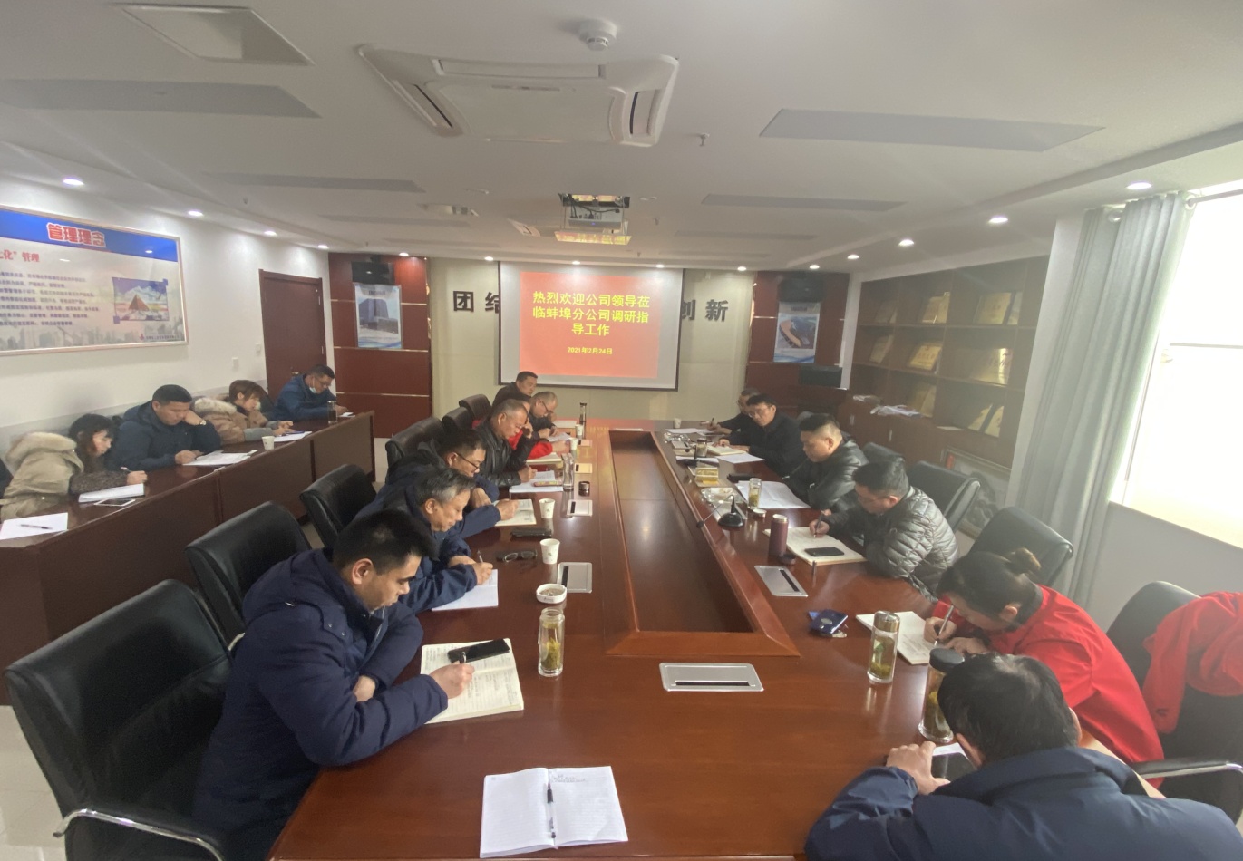 2月24日下午,公司副總經(jīng)理王軍深入蚌埠分公司調(diào)研指導(dǎo)工作。公司招標(biāo)辦公室經(jīng)理李紹林、物資管理部經(jīng)理卜英朝、分公司班子成員、部門負(fù)責(zé)人、項(xiàng)目經(jīng)理及相關(guān)部門人員參加會(huì)議。