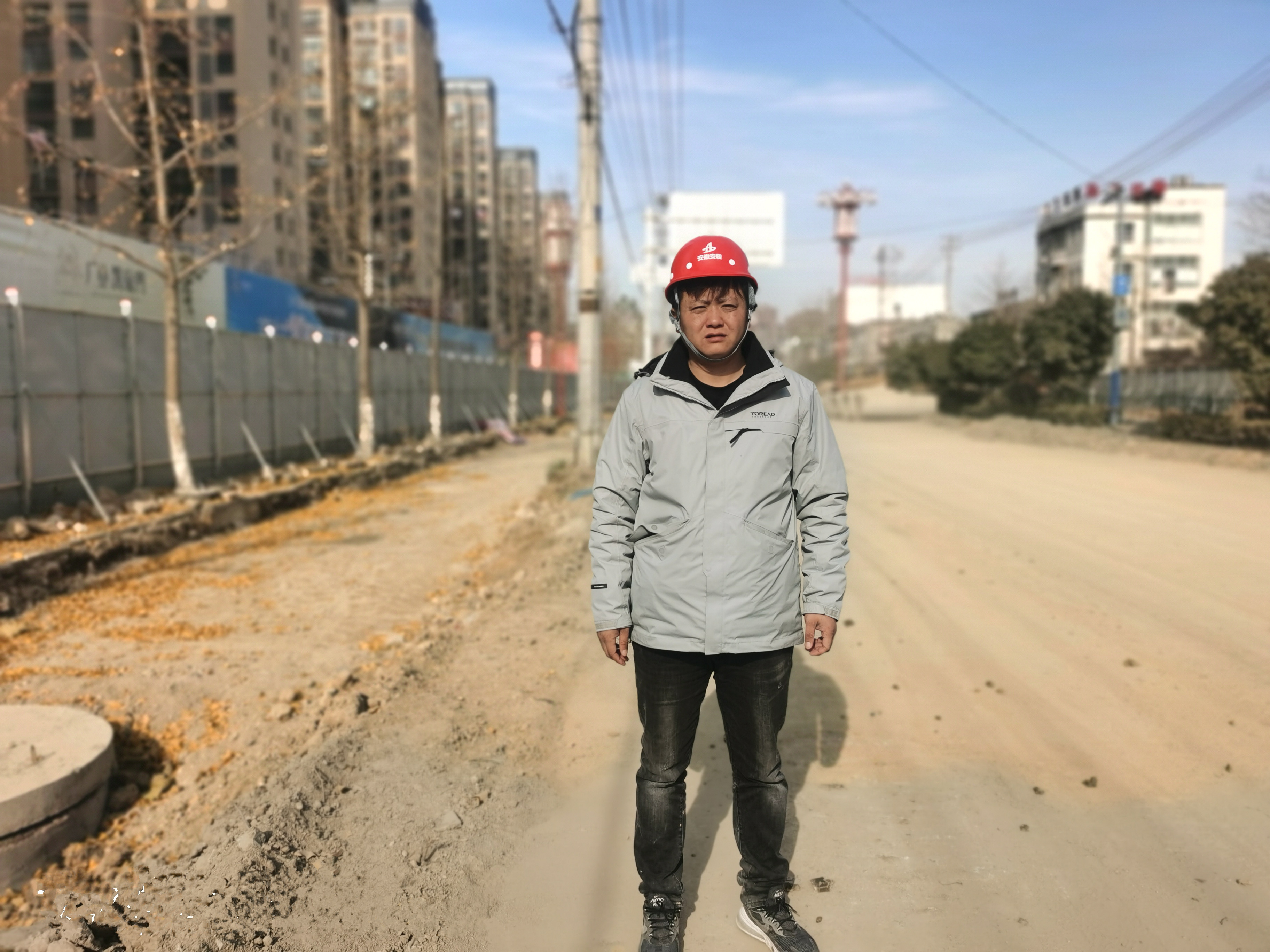 施工員潘俊龍每天一大早就騎上電動車匆匆趕往施工現場,這條熟悉的上班路已經過了無數次,但還是由于天寒地凍的氣候連車帶人摔倒在地;顧不上磕到路牙上的腿帶來的疼痛感,他快速爬起身、扶起車繼續前行。在他看來,疼痛可以忍受,但工作不能耽誤。