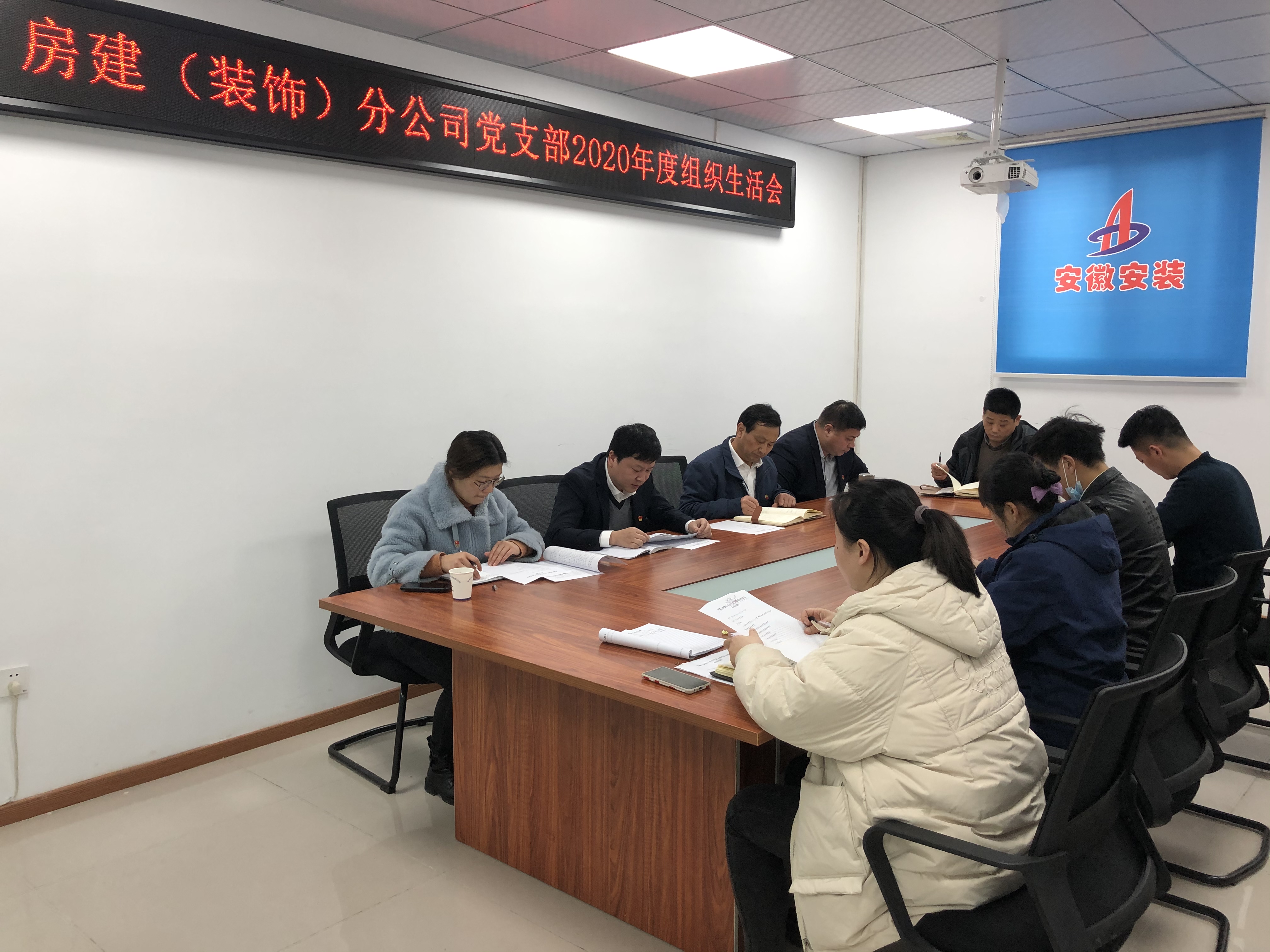 3月12日下午,房建(裝飾)分公司黨支部召開2020年度組織生活會,公司副總經理高飛應邀出席會議,公司黨委辦公室有關人員、支部黨員、分公司職工代表參加,會議由黨支部副書記張曼主持。