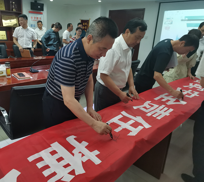 會議傳達了安徽安裝公司“安全生產月”活動方案,并對“安全生產月”的各項活動進行了動員部署,組織全體參會人員集中觀看《生命重于泰山--學習習近平總書記關于安全生產重要論述》專題片并進行安全宣誓,在主題橫幅上鄭重簽名,做出莊嚴的安全承諾。