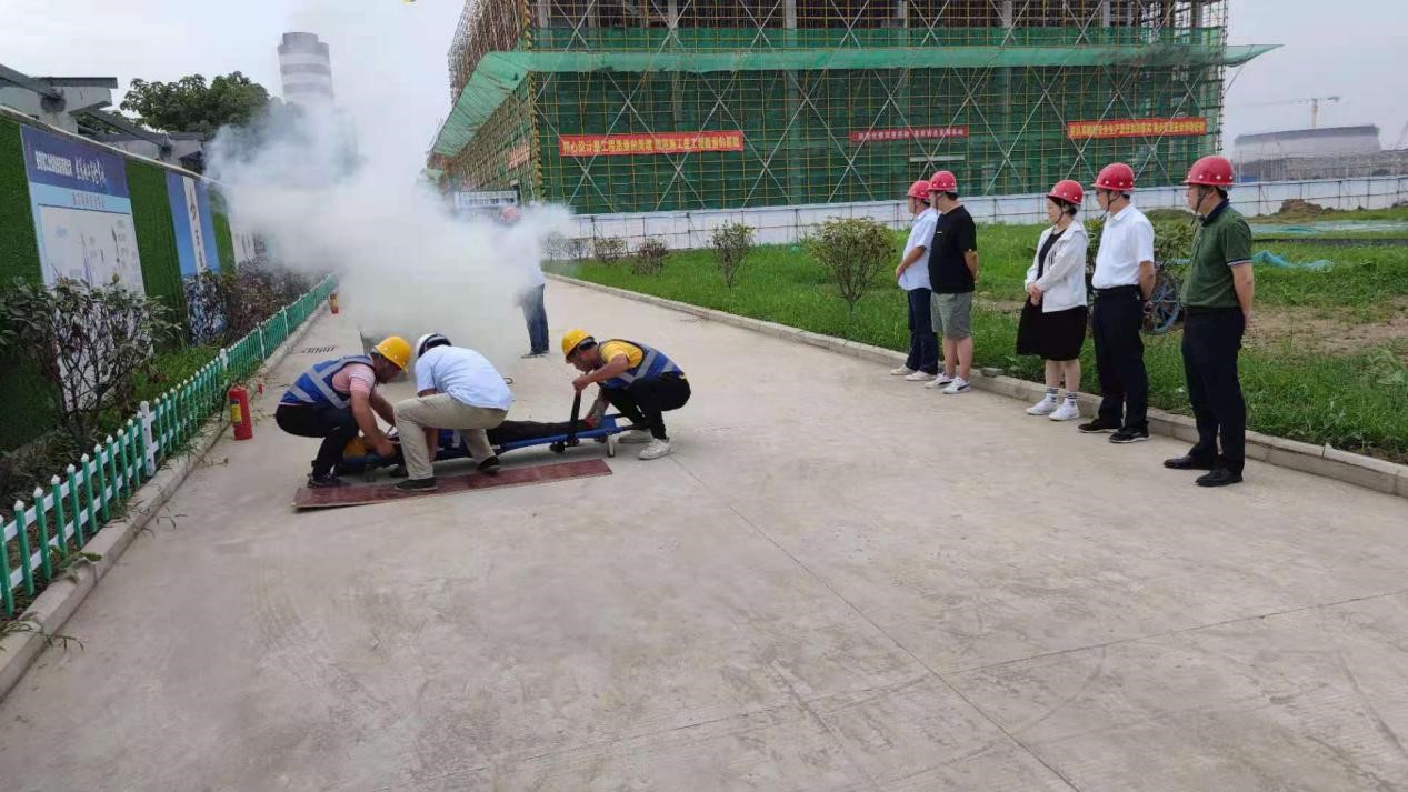 為深入開展安全月活動,加強項目安全應急處置能力,6月21日下午,房建(裝飾)分公司安徽壹石通化學科技廠房項目部在項目現場組織開展了消防應急演練,公司工程管理部經理龍海健,分公司黨支部書記王偉,阜陽中醫院安全科有關負責同志及項目部全體員工參加了演練活動。