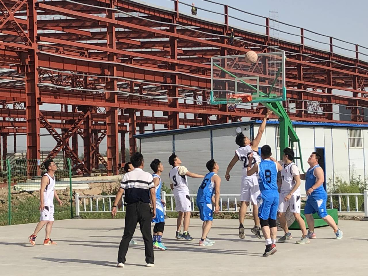 為喜迎五一,慶祝中國共產黨成立100周年,唱響“勞動最光榮”的主旋律,豐富職工業余文化生活,營造和諧向上、團結奮進的企業文化氛圍,4月29日下午由蚌埠分公司黨支部舉辦的“迎五一 慶祝建黨100周年”職工籃球友誼賽在蚌埠臨港產業園項目部室外籃球場火熱舉行。本次籃球賽兩支球隊的隊員全部為分公司各在建項目員工,分公司班子成員和部分員工觀看現場比賽。
